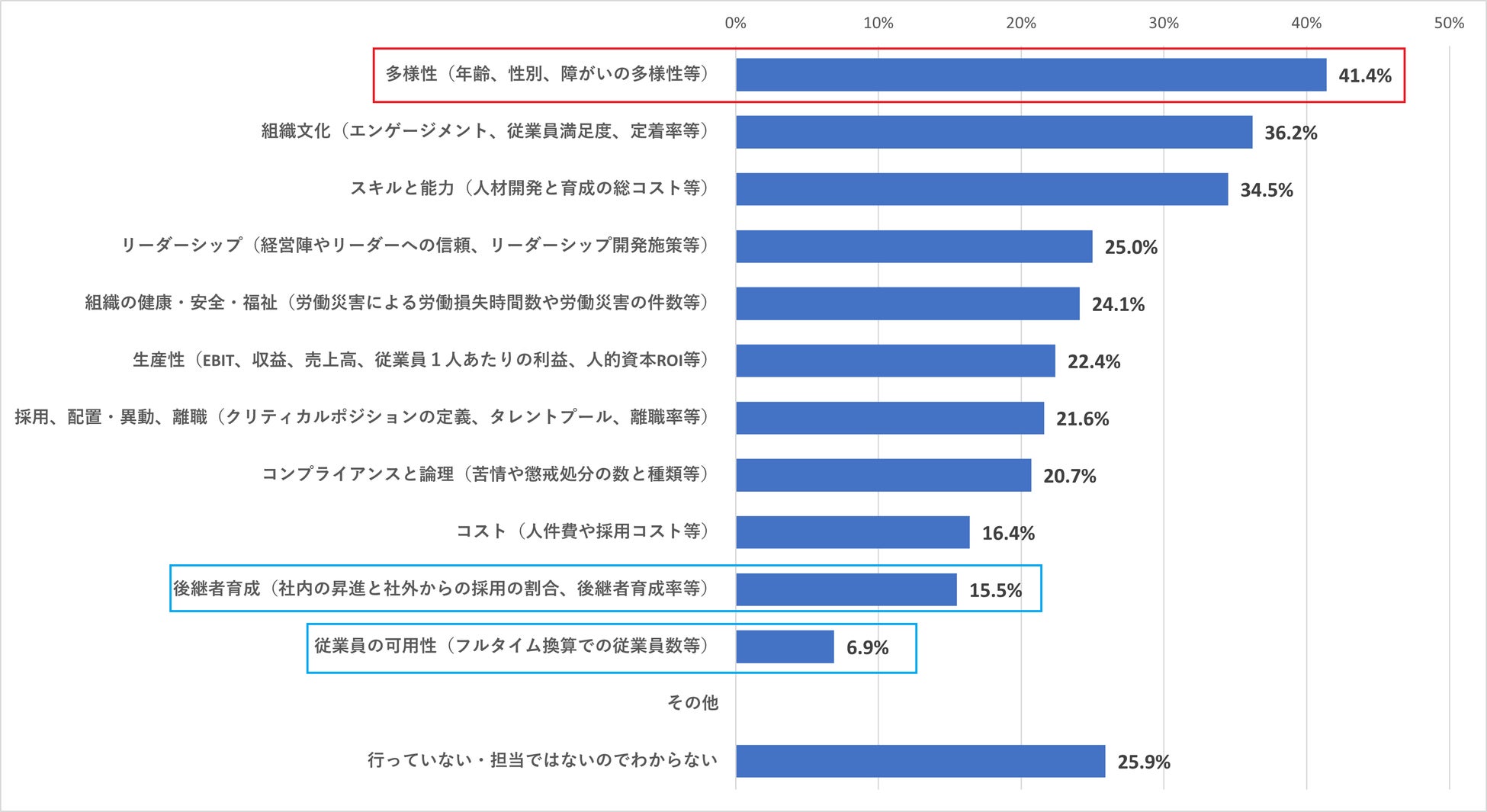 Q. あなたの会社では「人的資本経営」について、どのような項目で取り組み・検討を行っていますか?