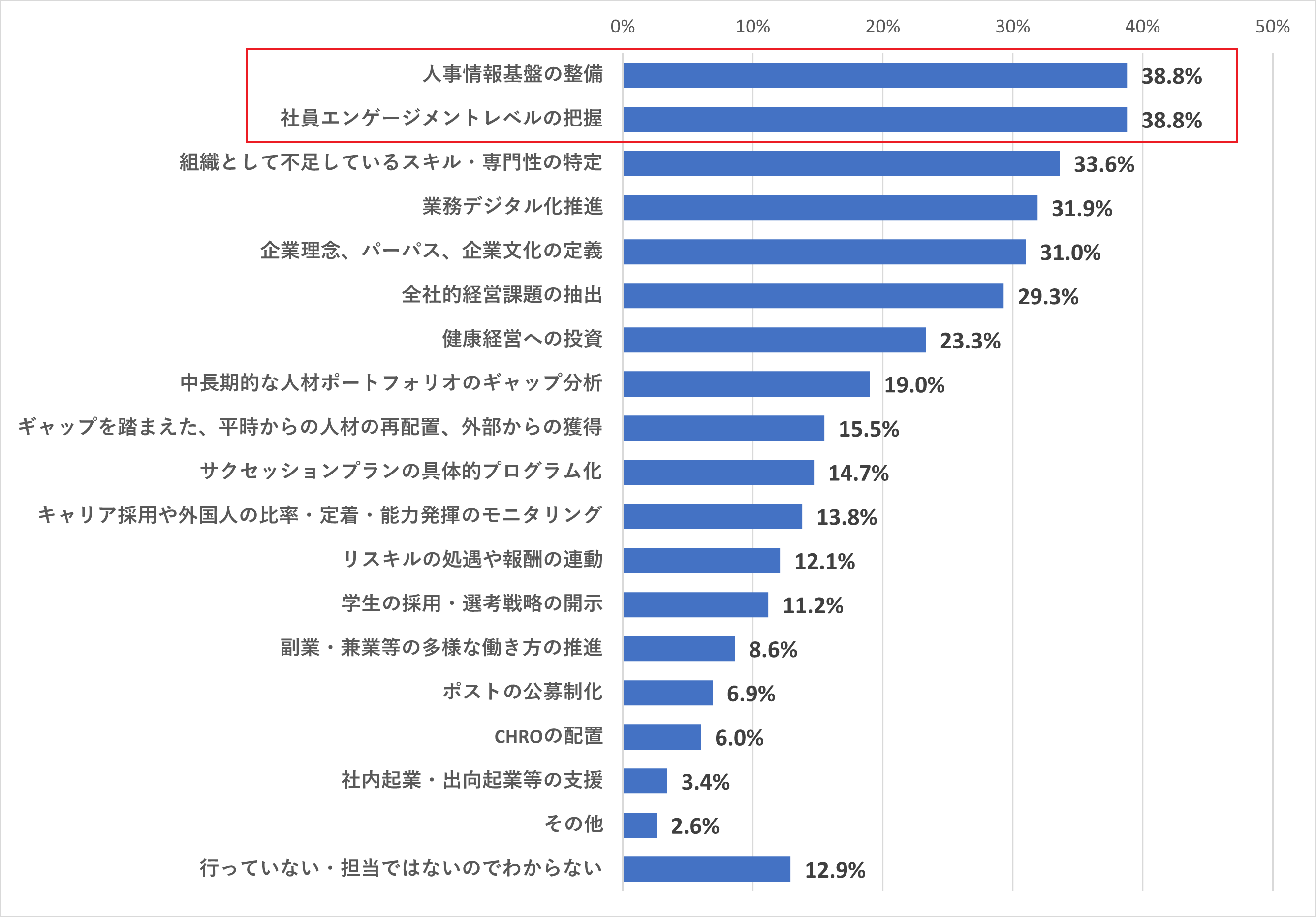 取り組み・検討上位は「人事情報基盤の整備」と「社員エンゲージメントの把握」