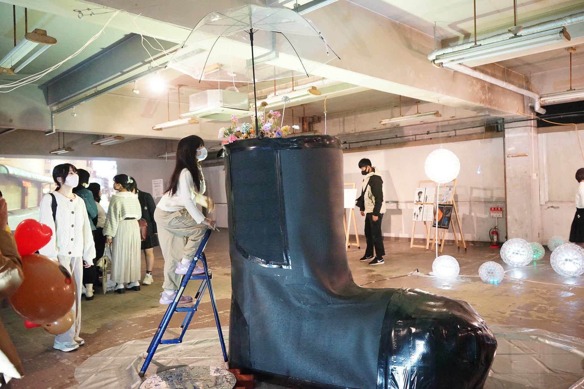住之江区にある大阪府立港南造形高校では、全校生徒600人が作品づくりに励んでいます。今回はクリエイティブセンター大阪の特徴ある空間を生かした体験型アートを企画制作しました。当日は制作者である生徒がお出迎えをし、作品を楽しんで頂けるように準備しています。