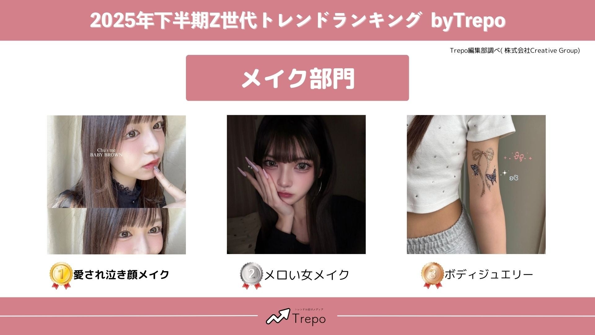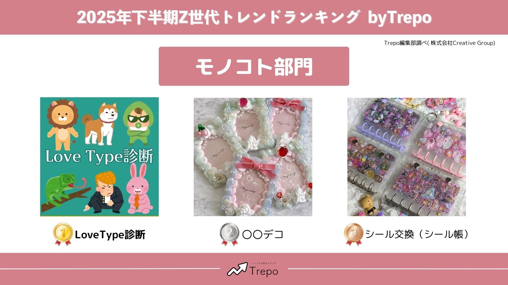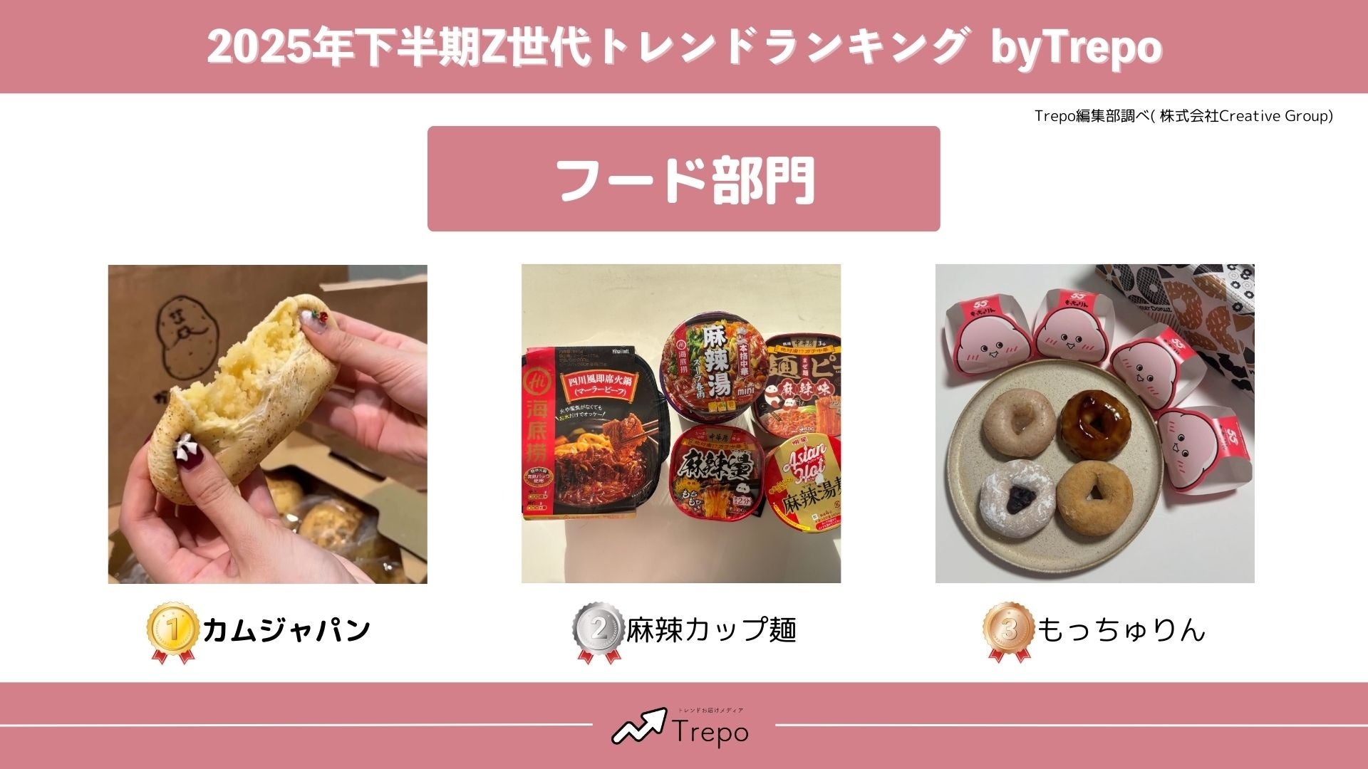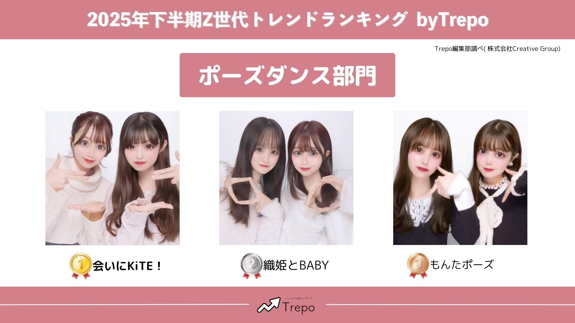 株式会社Creative Group(本社:東京都千代田区、代表取締役:中原一真)が運営する10代~20代女性向けトレンドメディア『Trepo(トレポ)』は、10代~20代の女性(Trepo girls)を対象に、2025年下半期のZ世代トレンド調査を行いました。WEBで実施したアンケート調査の結果をお知らせします。