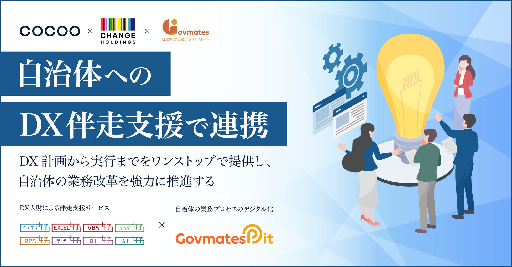 コクー、チェンジホールディングス、ガバメイツが自治体向けDX支援サービスで連携