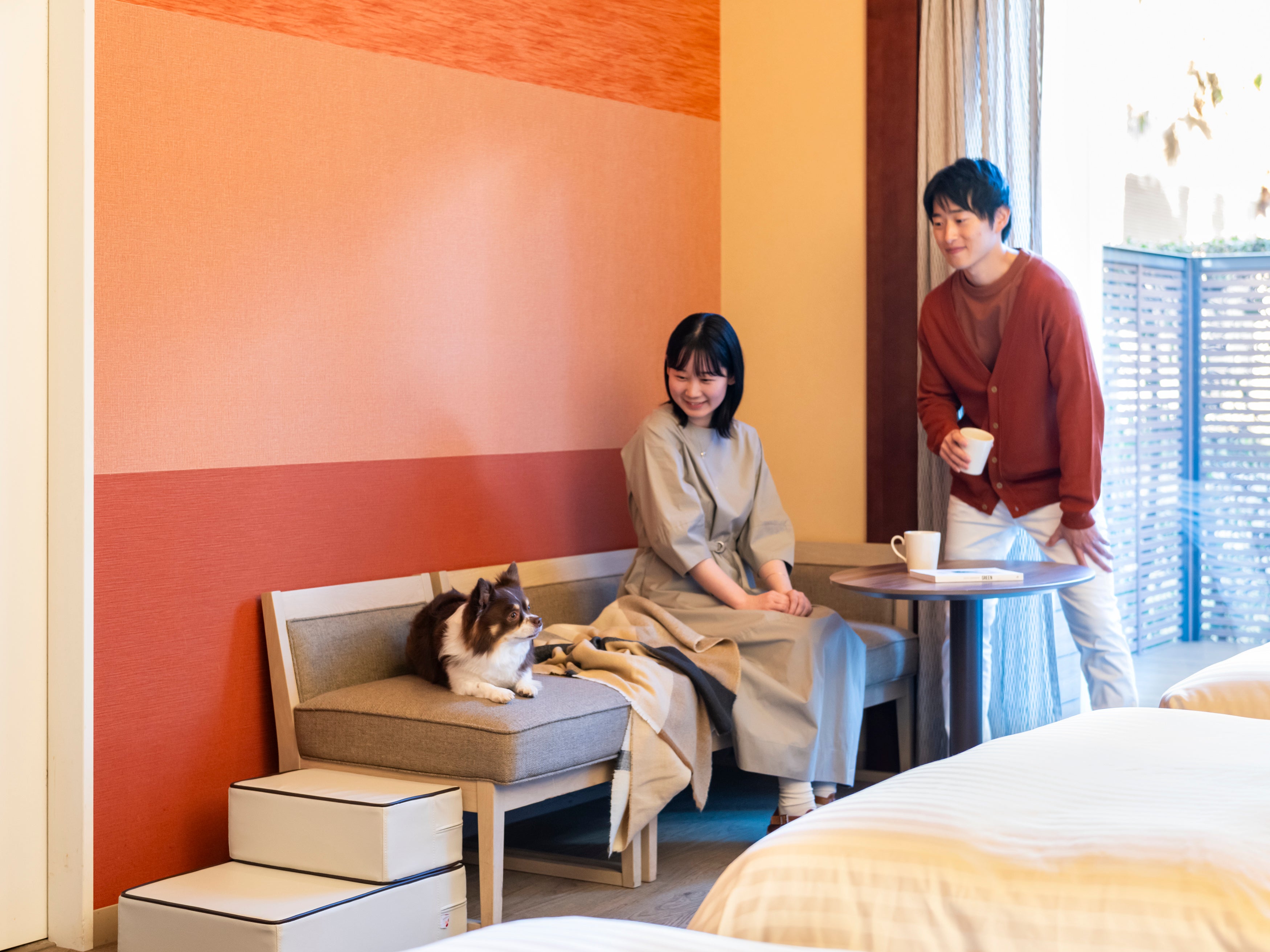 ご宿泊のお客様お一人当たり1匹最大4匹まで、同伴での宿泊が可能 *ご利用条件を満たす小型犬に限る
