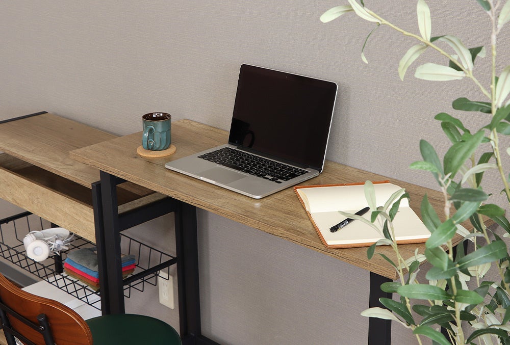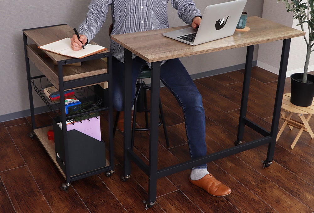 カウンターデスクは高さのある設計となっていて、立ったままでも使え、スタンディングテーブルとしてもおすすめです。効率よく作業したい在宅ワーカーにもぴったり!