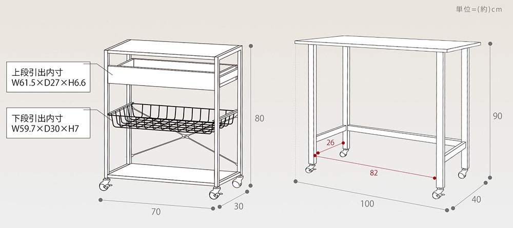 - サイズ :全体(約)横幅70×奥行30×高さ80cm、上段引出内寸(約)横幅61.5×奥行27×高さ6.6cm、下段引出内寸(約)横幅59.7×奥行30×高さ7cm