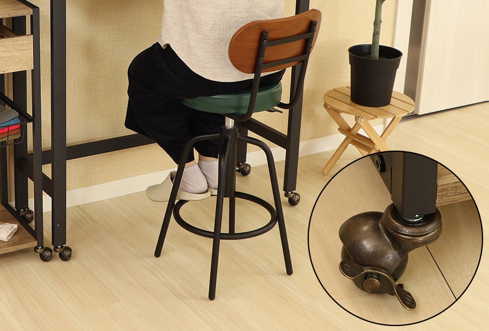 ヴィンテージ感を出すため、アンティークデザインのキャスターを採用しました。カウンターにもマルチワゴンにもストッパー付きのキャスターが付いているので、商品を動かしたいとき、動かしたくない時、自由自在に設定できます。
