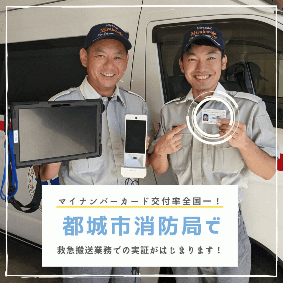 総務省消防庁の「マイナンバーカードを活用した救急業務の迅速化・円滑化に向けた実証実験」に都城市消防局が選定され、10月20日(木)より約2カ月間、都城管内での実証を実施します。