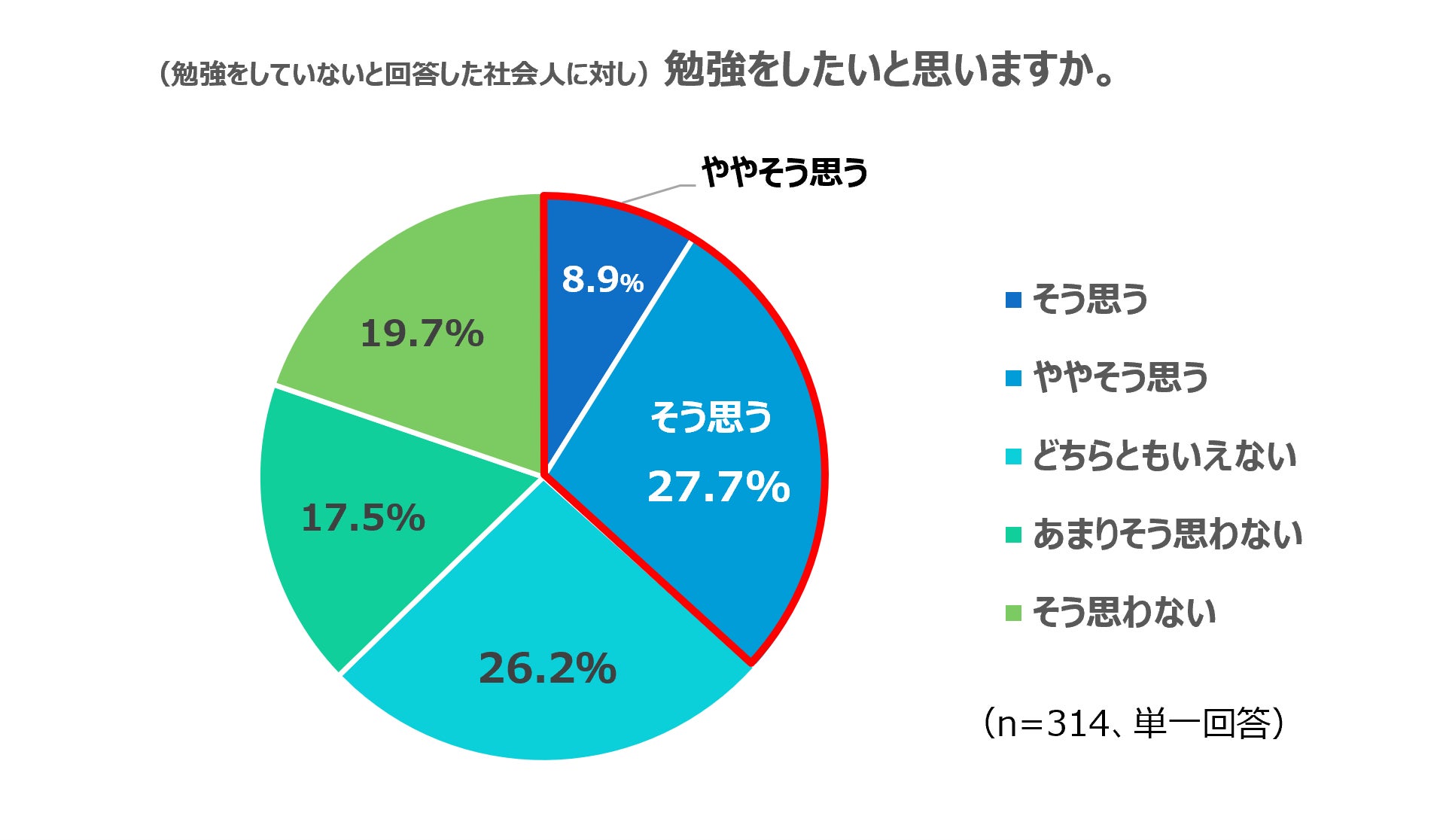 ●勉強をしていない社会人のうち、勉強を「したいと思う」のは4割未満にとどまる
