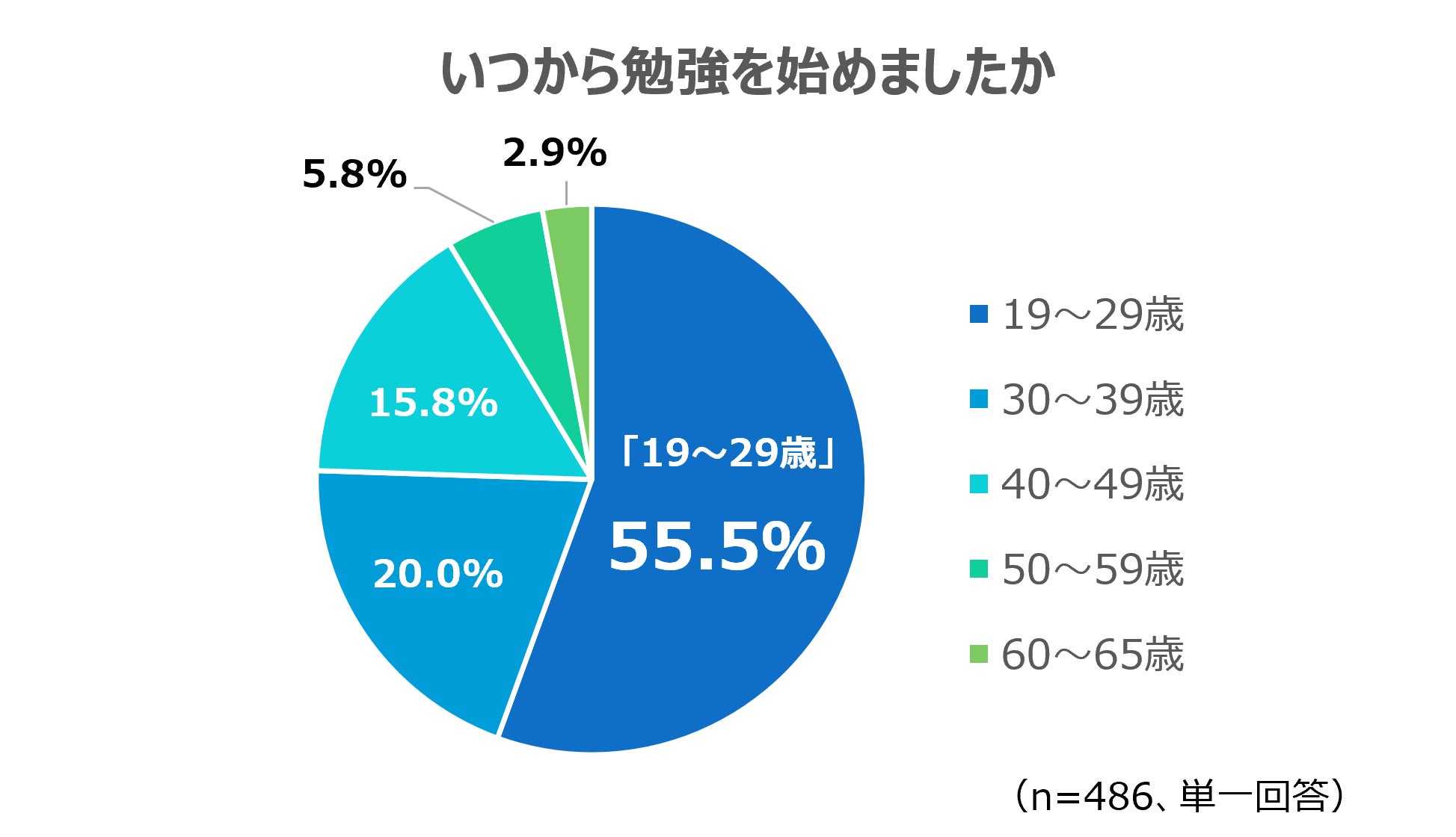 ●勉強を始めた時期 「20代まで」が過半数、40歳以上で始めた人も一定数