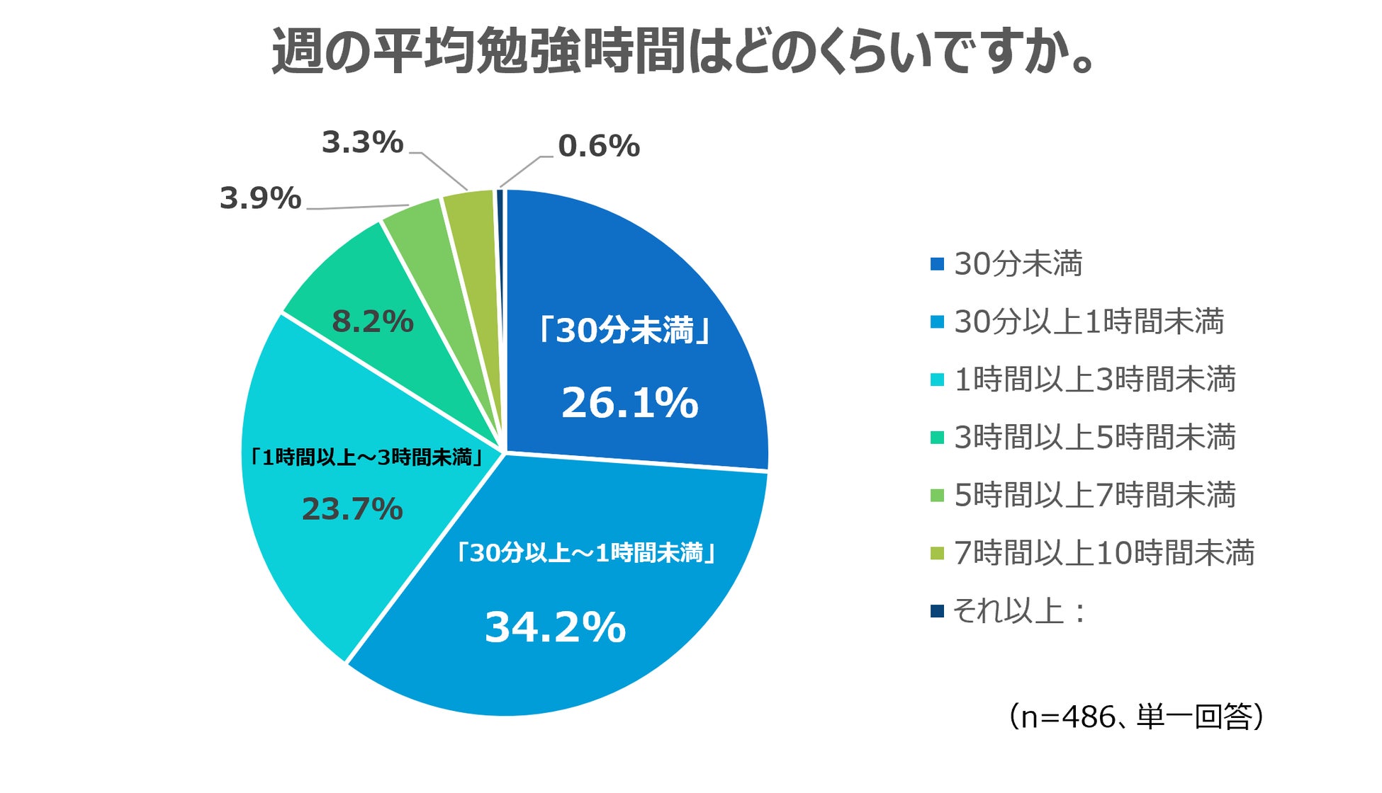 ・「勉強している」と回答した人たちも、実際の勉強時間は「週1時間未満」が6割以上を占め、勉強時間自体は限られる傾向に