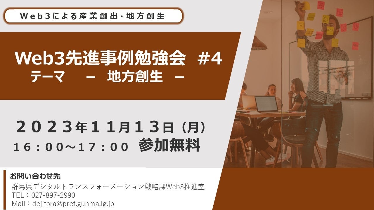 「デジタル先進県」を目指す群馬県は、いち早くWeb3に取り組むことで、産業創出、地方創生、行政課題解決につなげるために、Web3産業の最先端の現場から、様々な先進事例を学ぶ勉強会を開催しています。