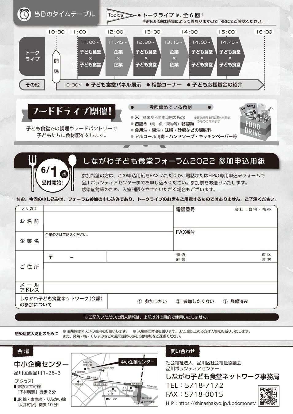 品川区の中小企業センター(品川区西品川1)で6月25日、「子ども食堂フォーラム2022~子どもたちの未来を支えよう~」が開かれます。