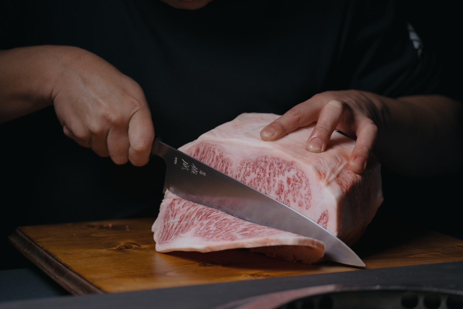 当店の牛肉は、職人が目利きをして厳選した“特選和牛”です。この自慢の和牛の質の高さを、金沢のお客様にも最高の状態で味わっていただきたく、プロフェッショナルなスタッフが目の前で焼き上げます(提供メニューによる)。