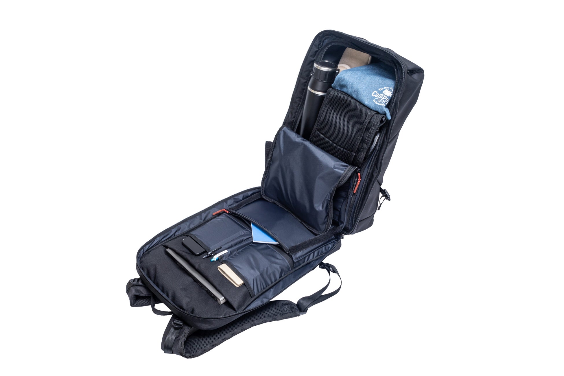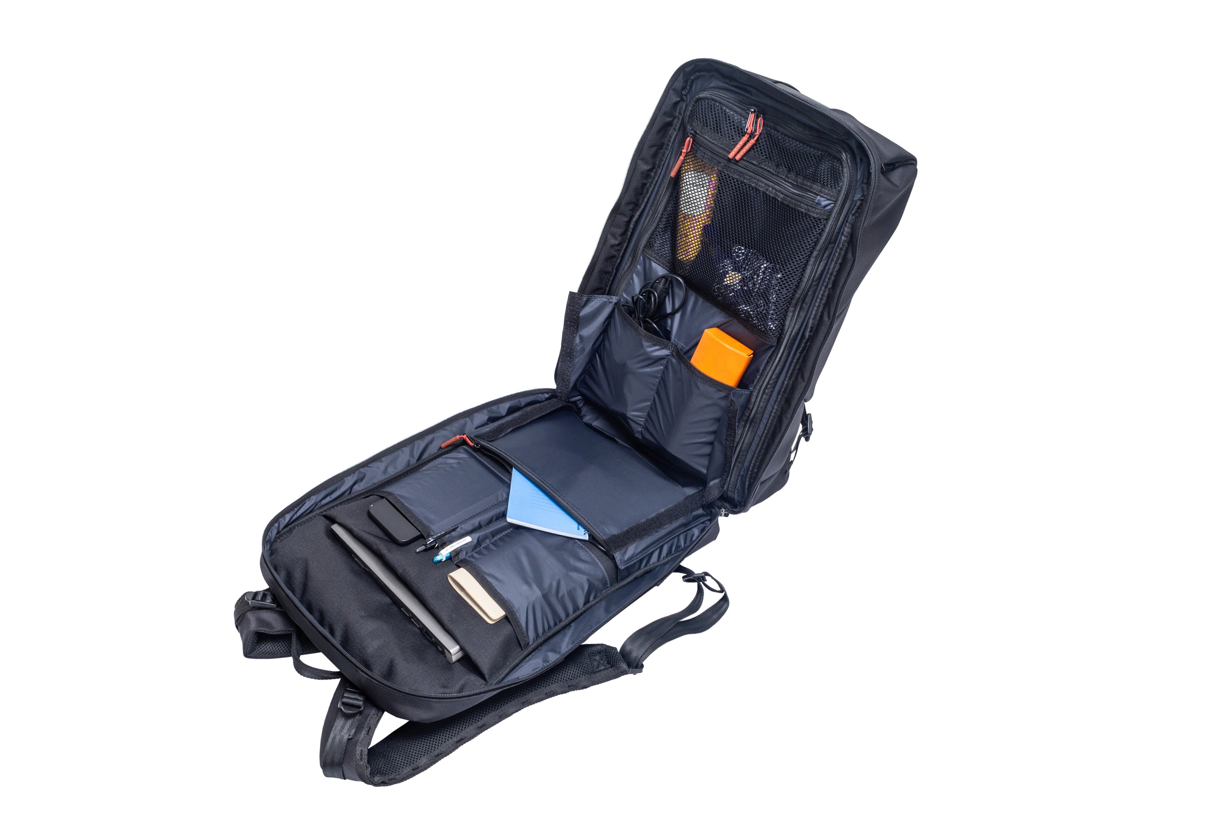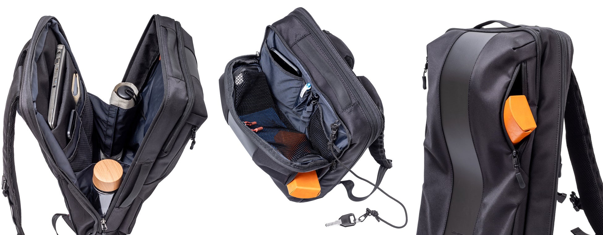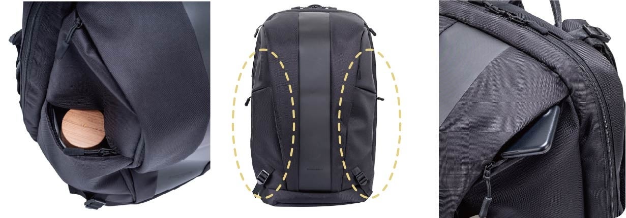 ビジネスモデルは、PCから小物までスッキリ整理できるオーガナイザーポケット仕様。ボトルホルダーはサイドからも出し入れでき、使いやすさ抜群です。外側正面上部には、クイックアクセスポケットを配置。外側から内側ポケットへスムーズにアクセスできます。