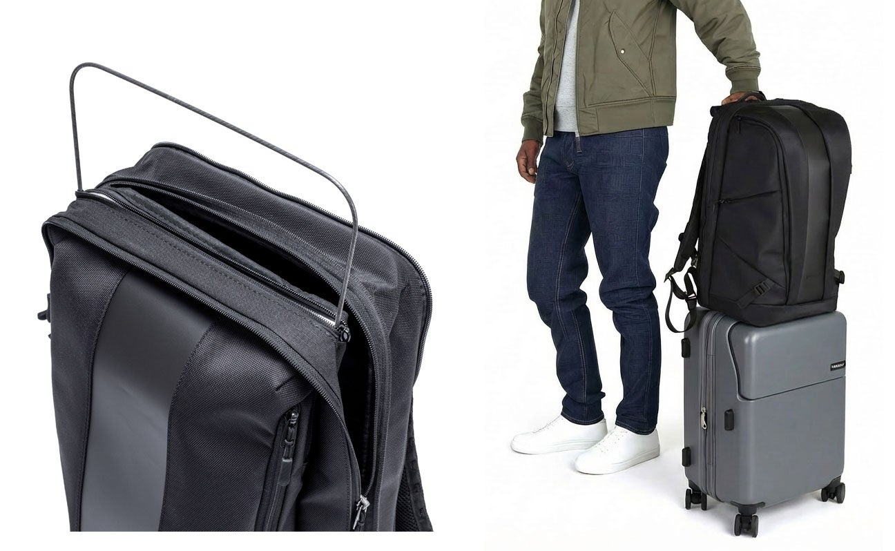 通気性を確保しながらも、内部に専用ワイヤーを組み込むことで、荷物の重さによる型崩れを防止。スーツスタイルを崩さないスマートな佇まいを常にキープします。