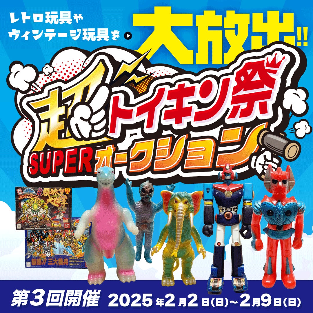 トイズキング(本社所在地:名古屋市中村区、代表者:山本 祐介)は、2025年2月2日(日)13:00〜2月9日(日)に、第3回目となる超(スーパー)オークション『トイキン祭』を開催いたします。