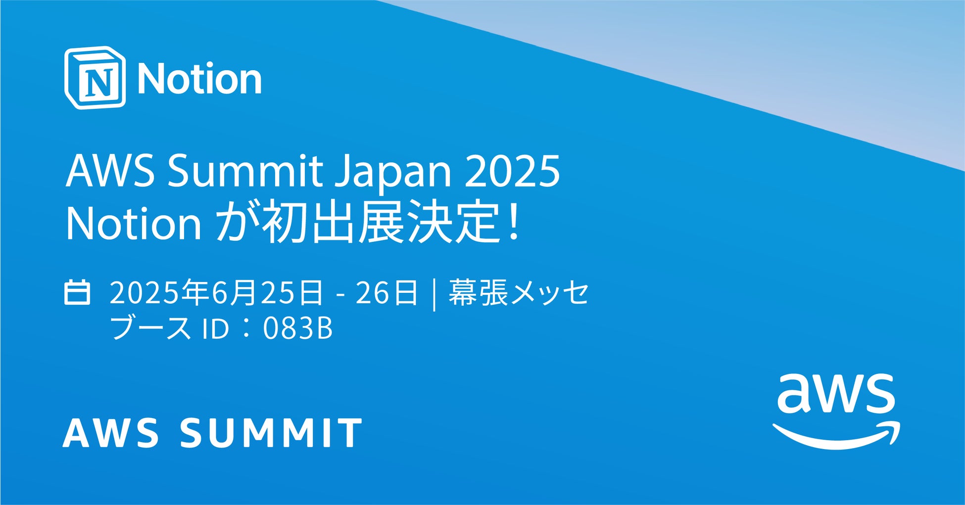 Notion、日本最大の"AWS を学ぶイベント"「AWS Summit Japan 2025」 初出展のお知らせ