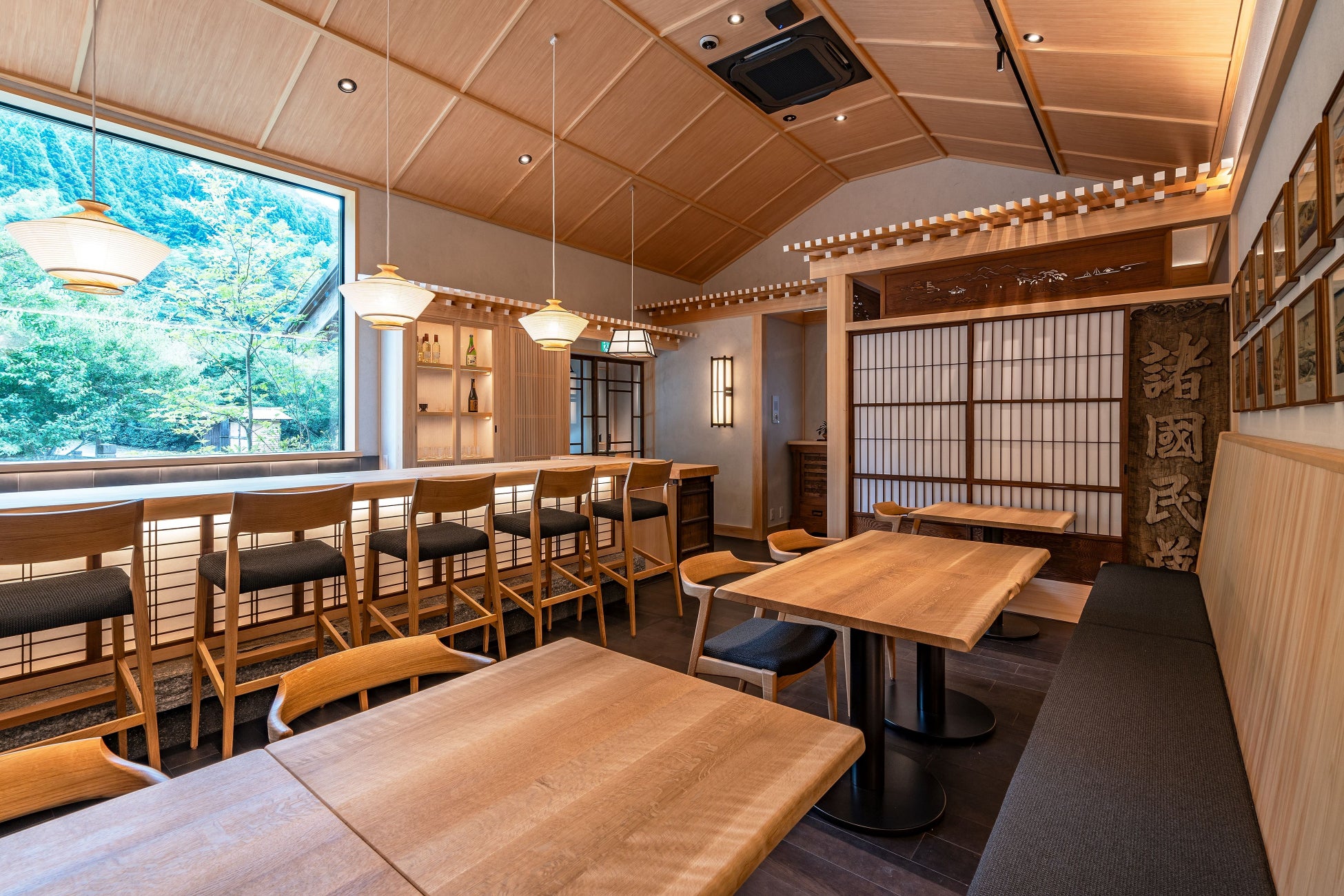 のどかな里山の風景を眺め、江戸時代より名産として旅人をもてなしてきたとろろ汁など、歴史を感じながらお食事をお愉しみいただけます。お野菜は、静岡県掛川市のしあわせ野菜畑さんの無農薬野菜を使用しており、心も身体も癒される優しいお料理をご提供いたしております。