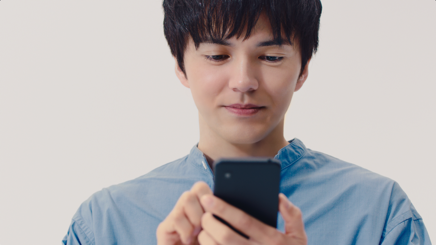 リラックスした林さんがリズミカルにスマホを操作して世界とつながる姿をご覧ください。