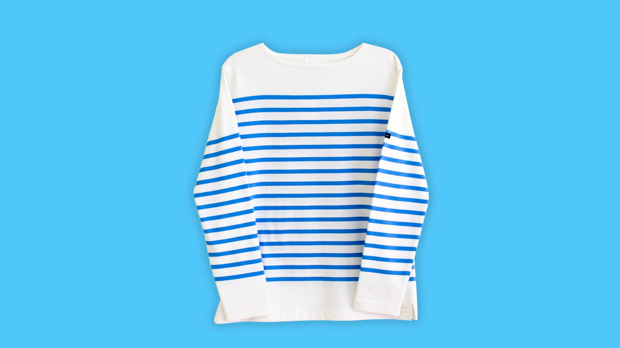 フランス海軍の水兵の制服がルーツのナバル。胸もとと肩口が無地になっているので、ボーダーでもすっきりとした印象です。フレンチカジュアルにはかかせないアイテム。