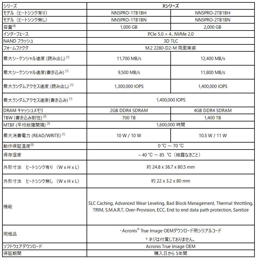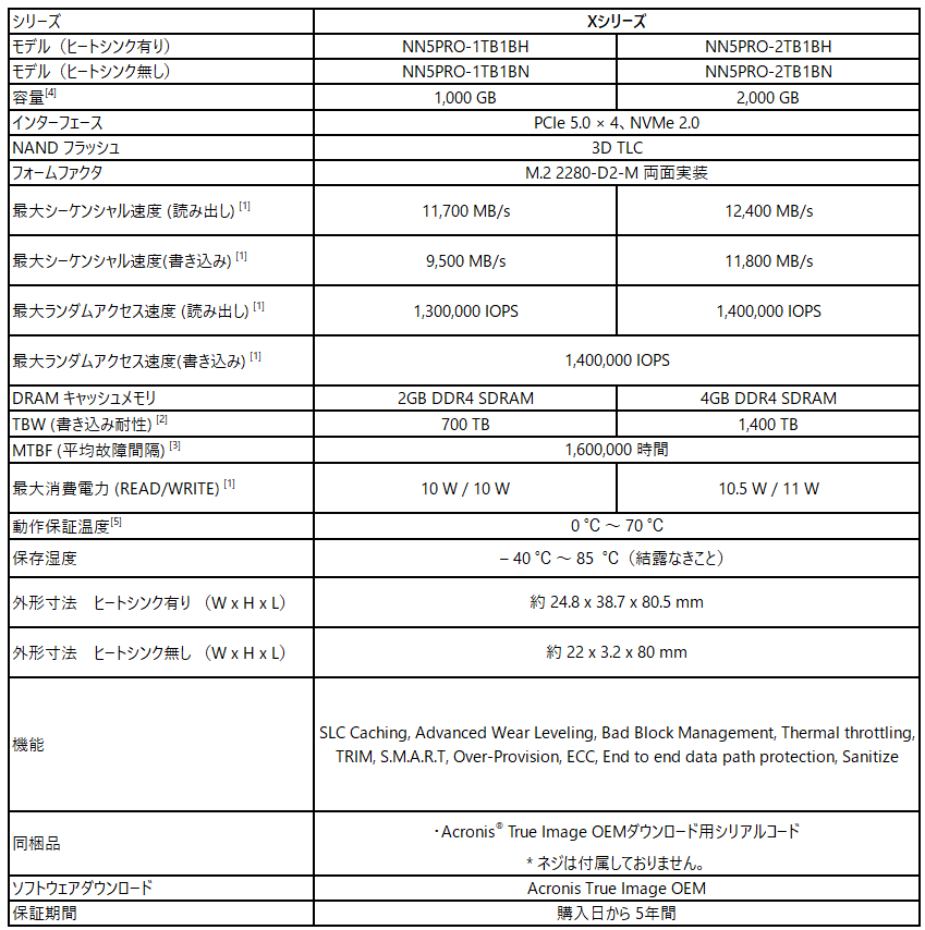 PCIe®5.0 NVMeTM SSD 「Xシリーズ」販売開始のお知らせ