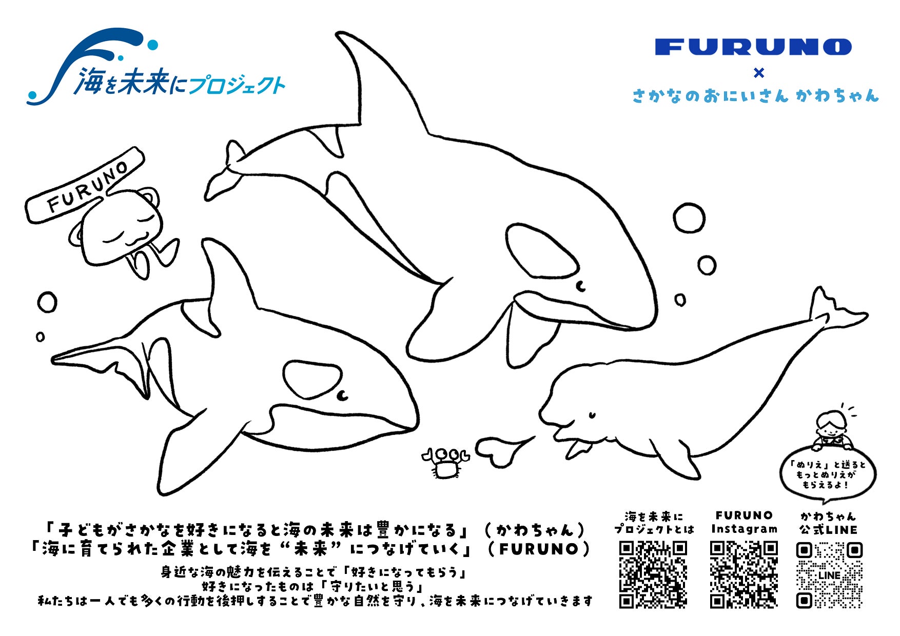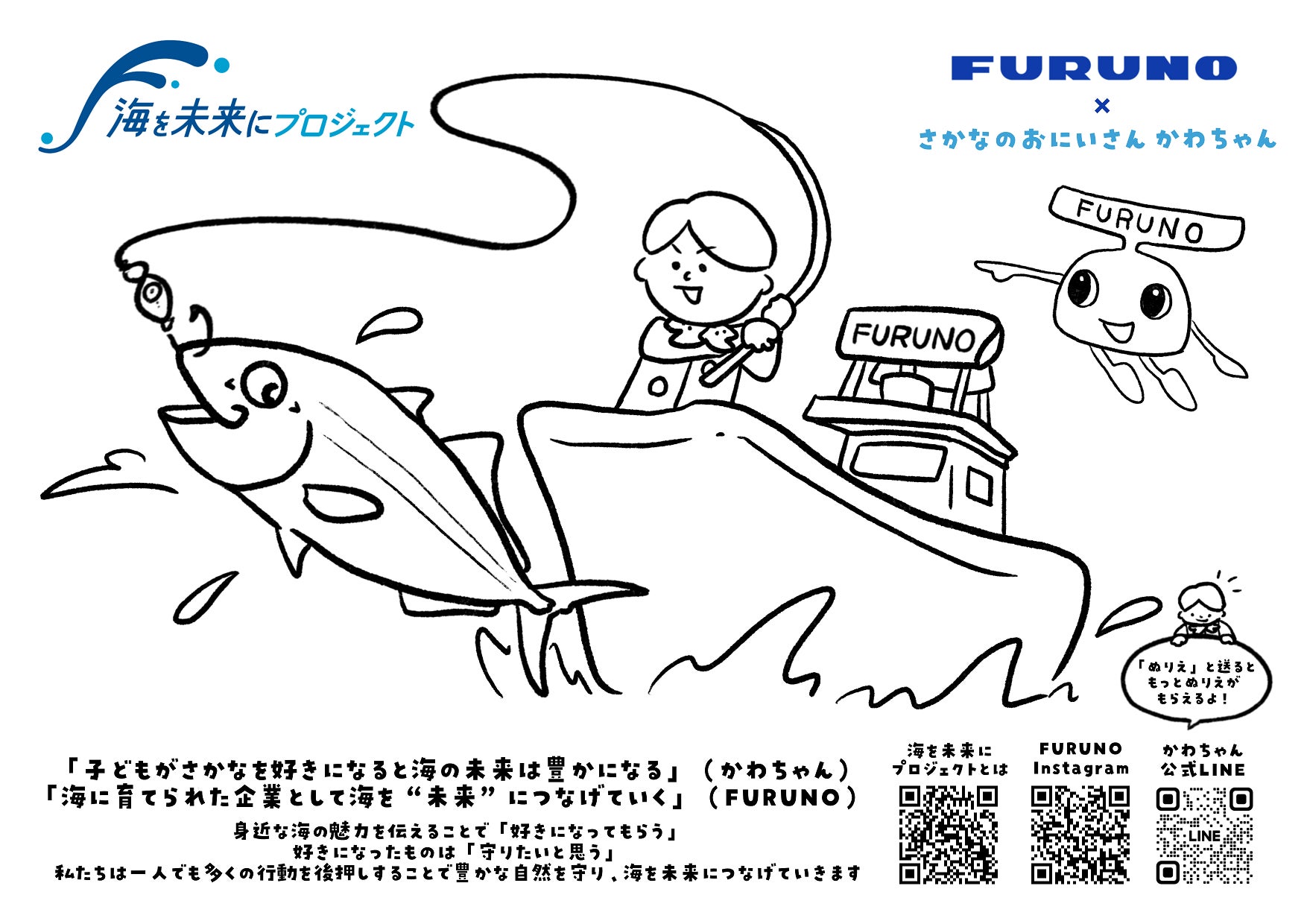 当社の出展ブースでは、魚群探知機や航海計器など普段あまり見ることのない船舶用電子機器の展示やVR空間でそれらの機器をまるで海の上で使用しているかのような操船体験ができる「3D操船シミュレータ」を出展します。さらにお子さま向けに当社の公式アンバサダー「さかなのおにいさん かわちゃん」が描いたオリジナルおさかな塗り絵コーナーも登場し、ご家族でもお楽しみいただけます。