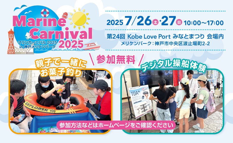古野電気株式会社(本社:兵庫県西宮市、代表取締役社長執行役員:古野幸男、以下、当社)は2025年7月26日(土)、27日(日)に開催される「マリンカーニバル2025 in神戸メリケンパーク」に出展しますのでお知らせします。会場内ではボートや水上オートバイが展示されるほか、海の生きものアイスクリームキャンドルづくりやこどもボート免許スクールなど、大人も子どもも楽しめる様々な体験プログラムが用意されています。