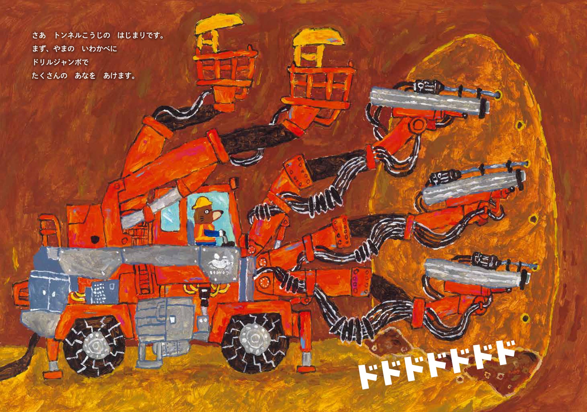 池永さんがふだんふれているドリルジャンボが絵本になったことについては、「トンネルを掘る機械は、普段あまり目にすることができないので、絵本になったことによって、より多くの人々にドリルジャンボやトンネルの作り方を知って頂く機会が増えて嬉しいです。」とのこと。