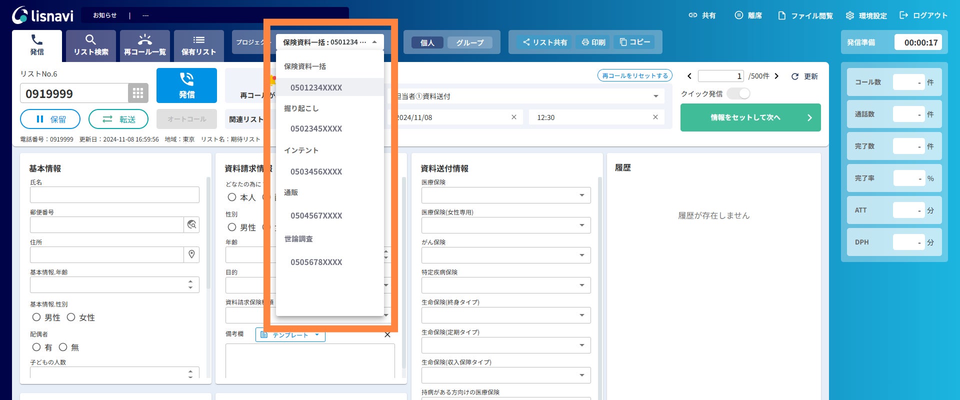 複数商材・番号を保有する場合でも、ワンクリックで切り替えが可能。ログインし直す必要がなく、よりスピーディな発信体制を実現します。