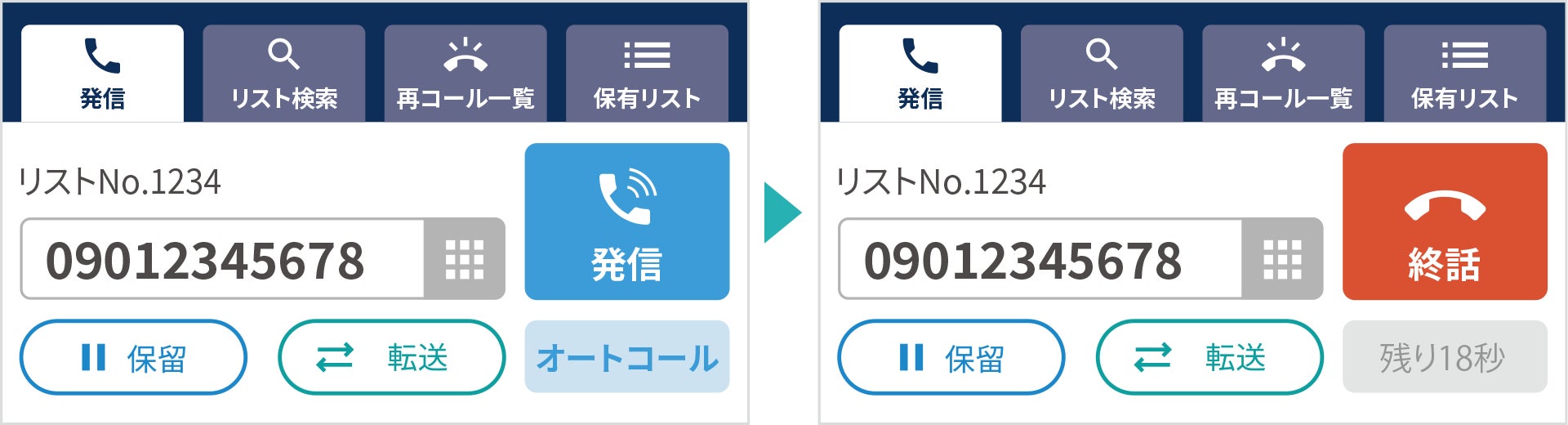 ・発信画面から商材や電話番号をスムーズに切り替え可能
