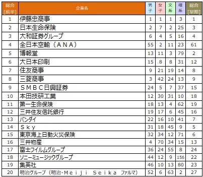 【1】商社人気継続:伊藤忠商事は6年連続1位・総合商社3社がTOP10入り