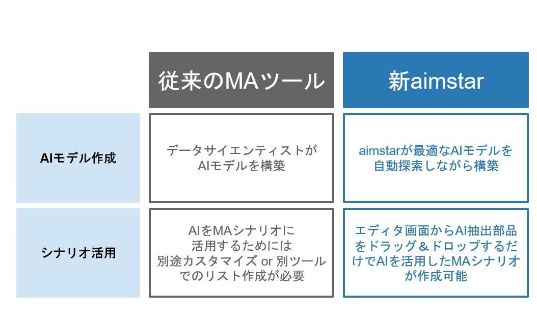 ~従来のMAツールと、新aimstarのAI活用の比較~