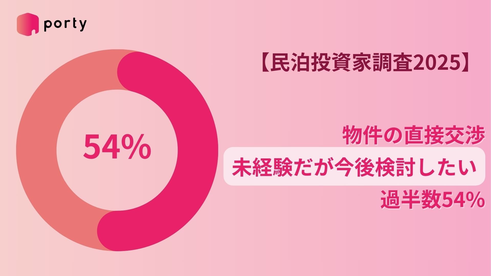 【民泊投資家調査2025】物件の直接交渉、「未経験だが今後検討したい」が過半数54%