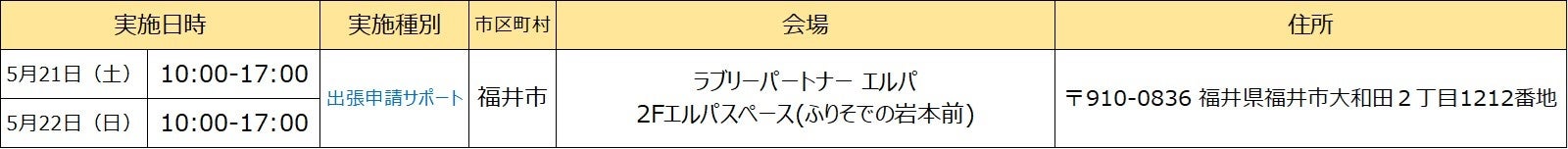 ※開催場所の調整状況や新型コロナウィルスの感染状況等により、「出張申請受付」及び「出張申請サポート」の開催を中止・延期、または実施内容が変更となる可能性がございます。