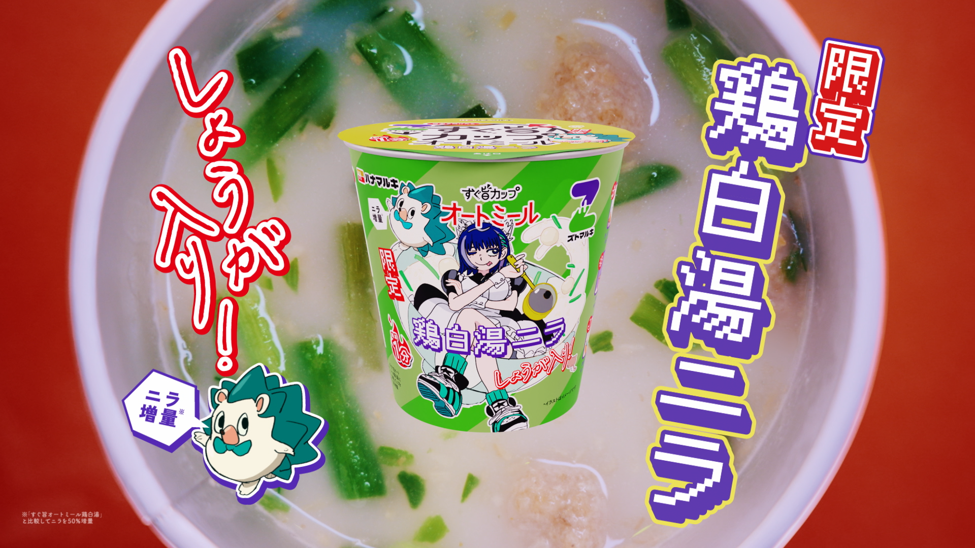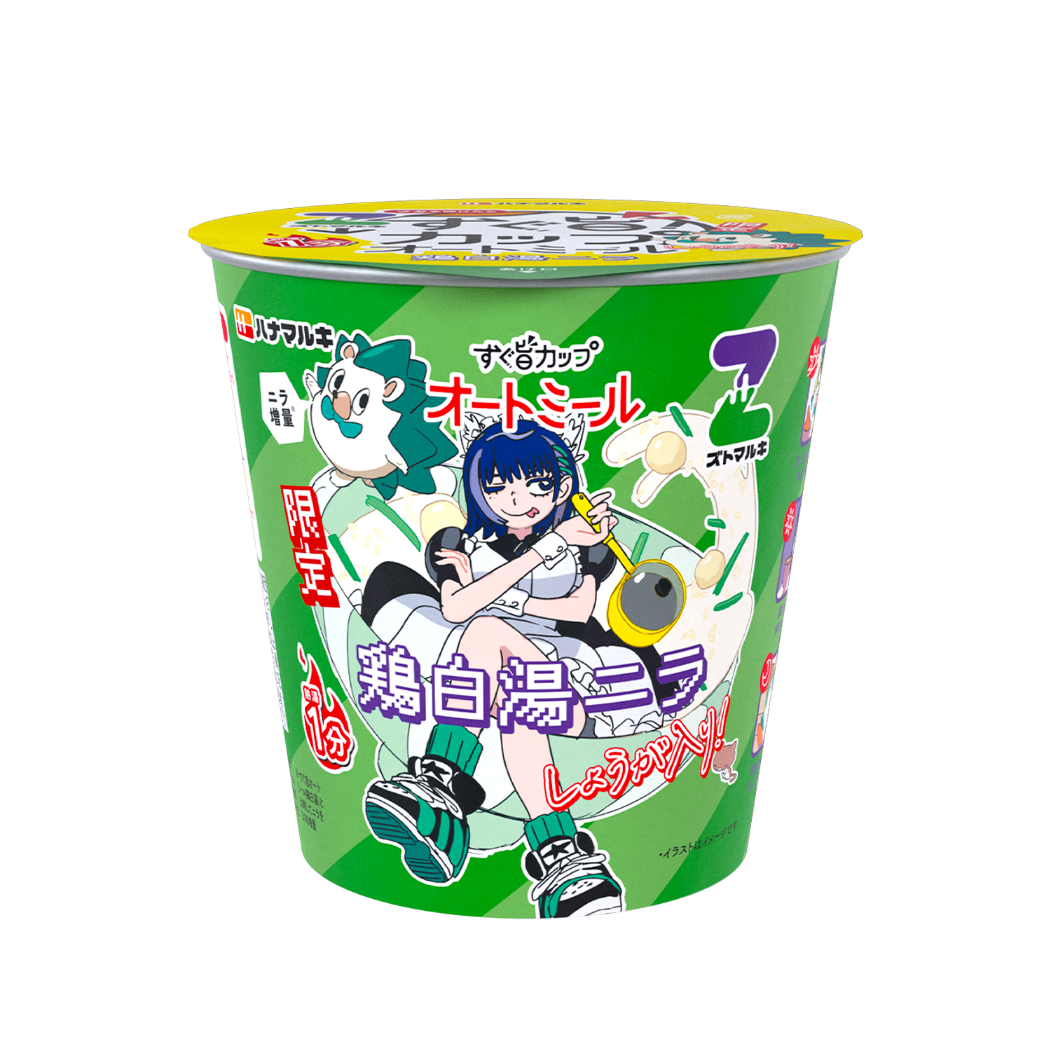 【ハナマルキ × ずっと真夜中でいいのに。】スペシャルコラボレーション第二弾!コラボ限定「すぐ旨カップオートミール 鶏白湯ニラ増量限定生姜入り」を共同開発。