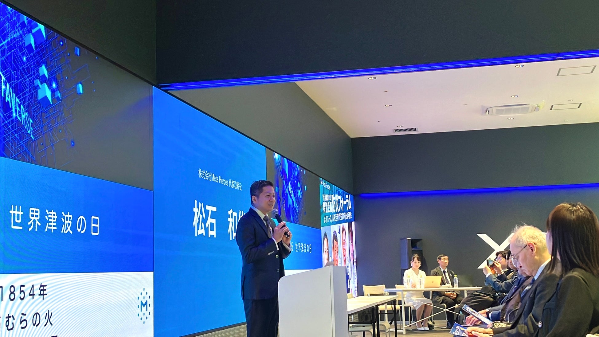 2024年11月5日(火)、大阪府なんばパークスeスタジアムなんば本店にて、株式会社Meta Heroes(住所:大阪府大阪市、代表取締役:松石和俊、以下「当社」)が「世界津波の日」に合わせた特別企画「防災フォーラム」を開催しました。本フォーラムでは、防災に関する専門家をお迎えし、防災知識の向上とともに、メタバース技術を活用した新たな防災対策についての講演とディスカッションが行われました。