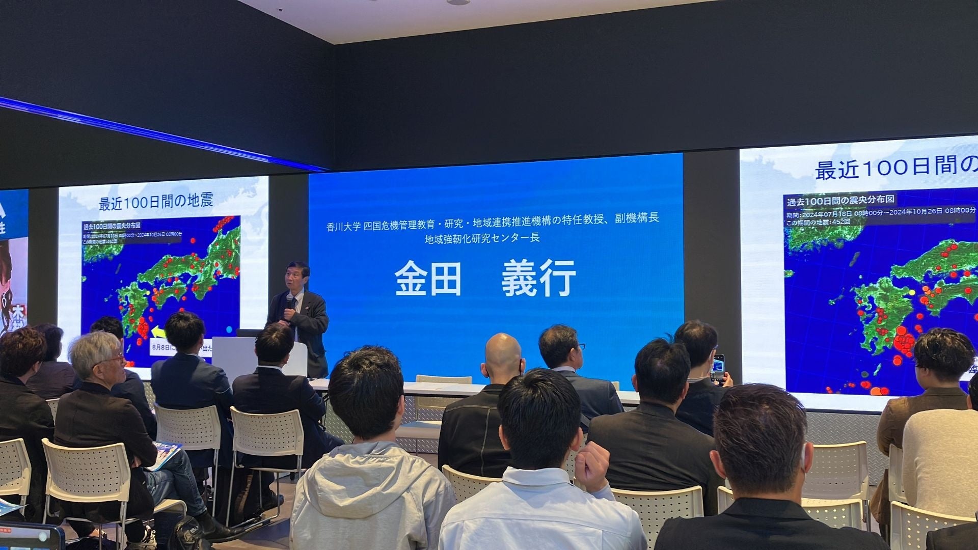 地震学・減災科学の専門家である金田氏が、日本の地震状況や過去の大震災の傾向分析、現代の先端減災教育・共災教育について解説しました。