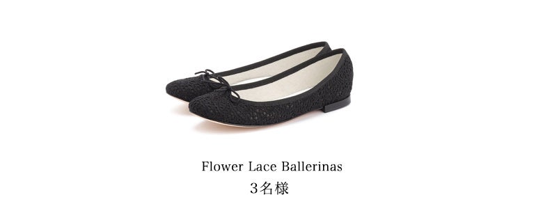 レペット日本公式アカウントをフォローし、5/18(水)〜5/31(火)までの期間に『#my_repetto』を付けてお気に入りのレペットアイテムを投稿をしてください。投稿いただいた方の中から、抽選で3名様に5/18(水)より発売の日本限定「Flower Lace Ballerinas」をプレゼントいたします。