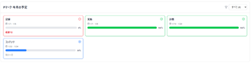 中期的なスケジュール管理は、「今月の予定」や各タスクの進捗状況を視覚的に表示します。