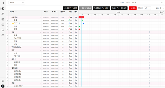 ●認証取得または更新までのタスクフローを一目で表示し、ガントチャートで管理