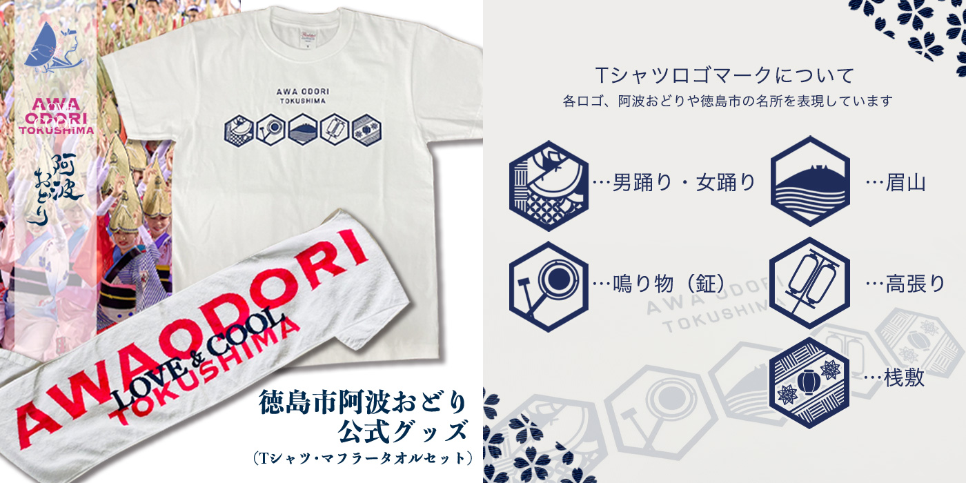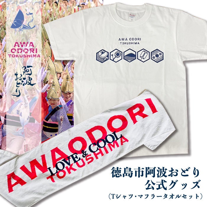 徳島市 阿波おどり公式グッズ Tシャツ【サイズ選択可】・マフラータオルセット 寄付金額17,000円