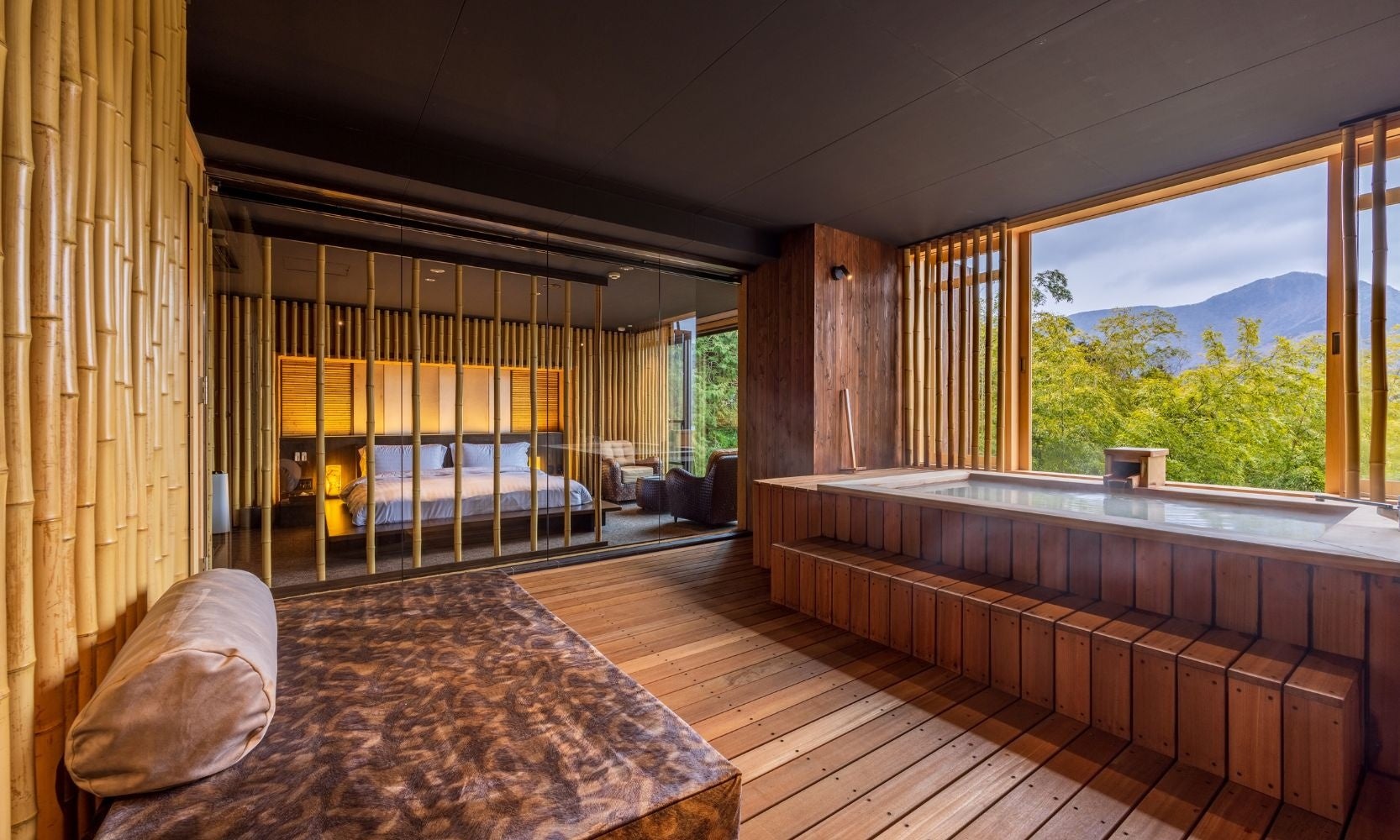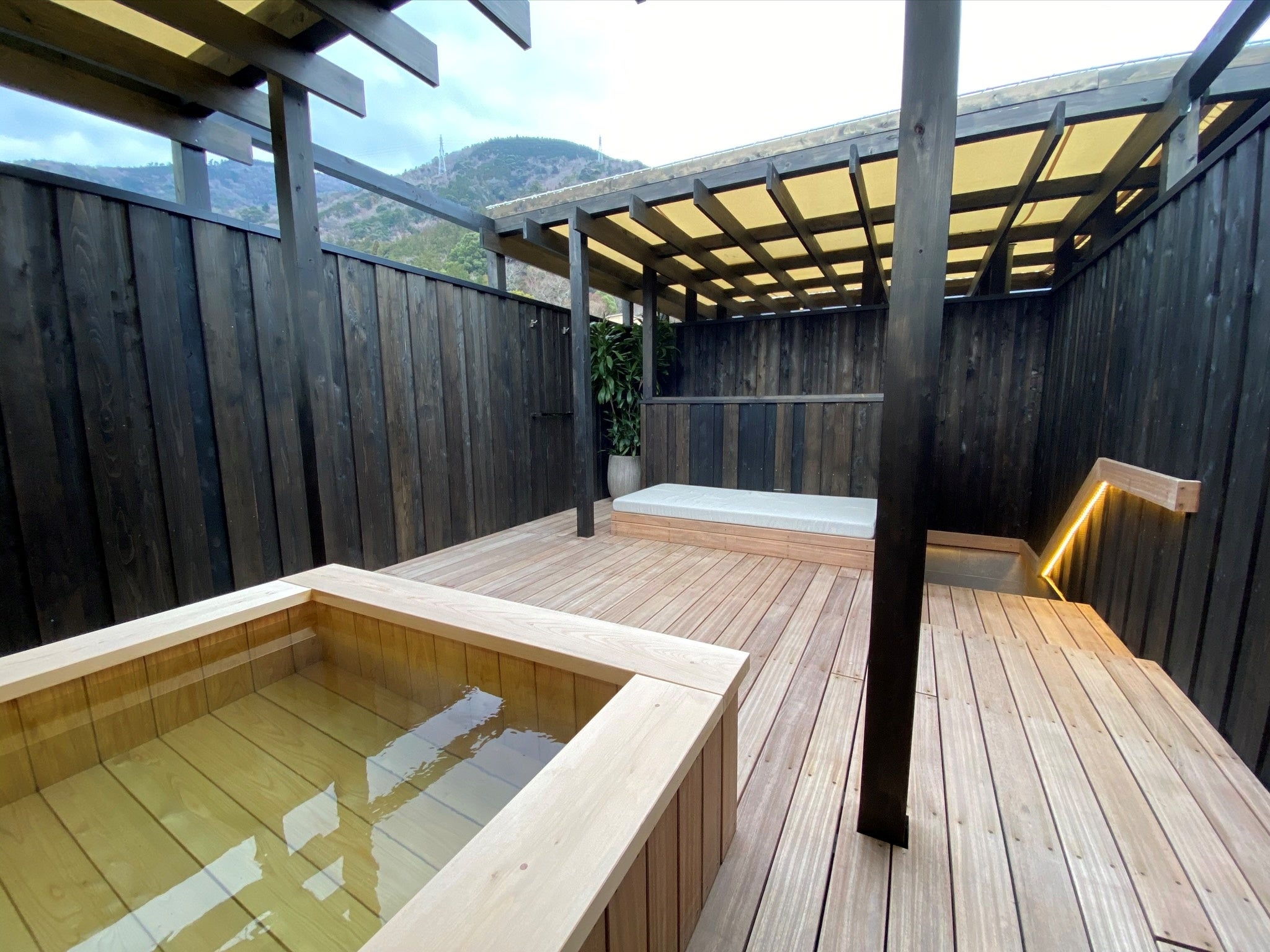 箱根湯本駅から徒歩7分、箱根観光を巡る拠点として便利な立地にあります。当館はホテルでありながらも、旅館を体験できる設えを施しており、客室露天風呂を備えるお部屋もご用意しています。