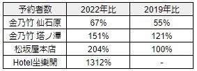 金乃竹グループ 2023年GWの予約者数がコロナ前の2019年対比で118%