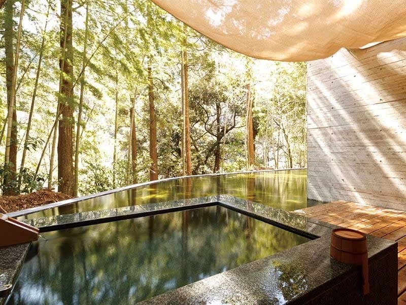 渓谷の吊り橋を渡り別世界へ。サービス・空間・環境の全てにおいて線を引かないノーラインリゾートをコンセプトに、塔ノ澤の自然に溶け込む為のこだわりの空間を提供しています。