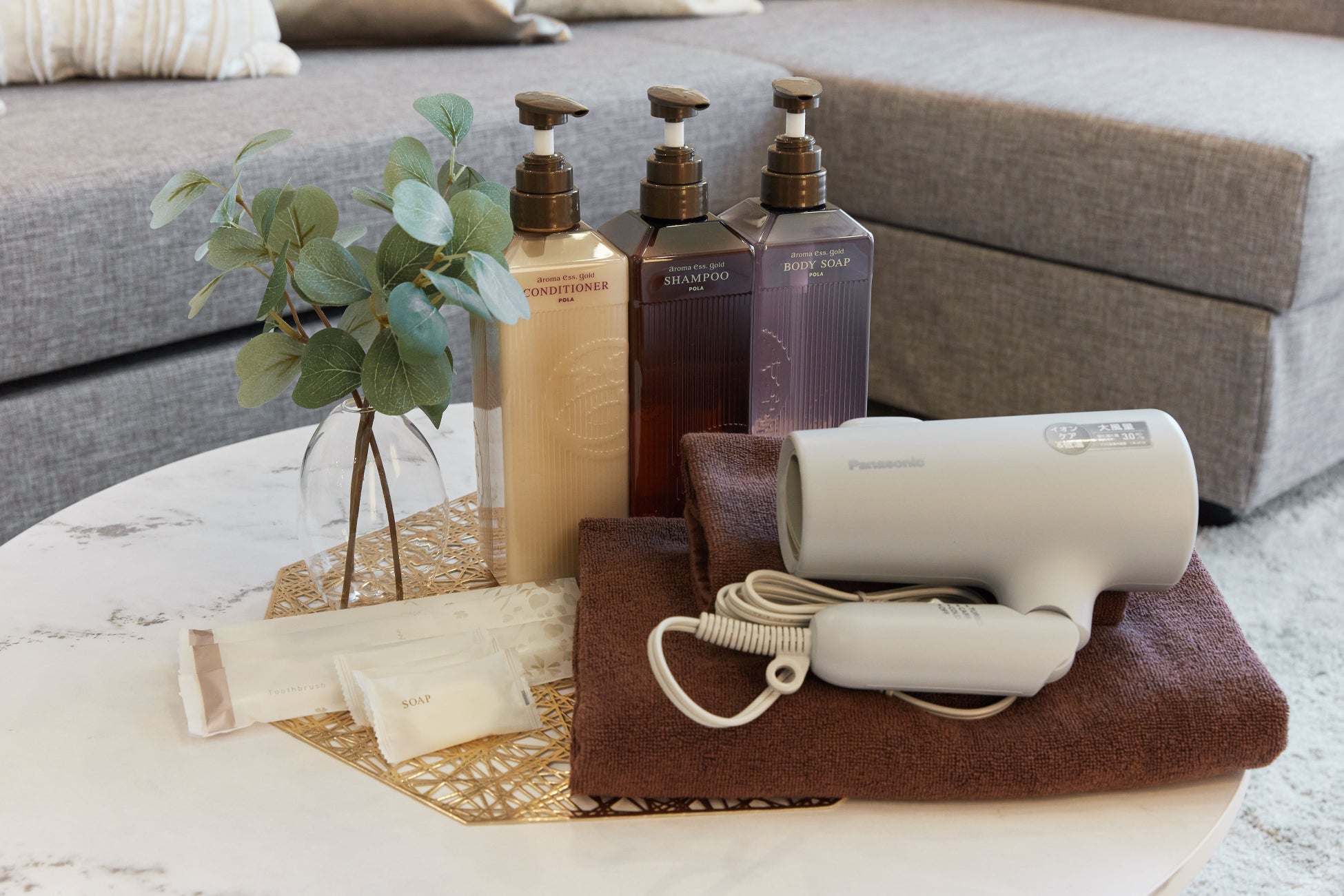 また、ドライヤーはパナソニックのイオニティを採用。そのほかシャンプーコンディショナーなどのアメニティもPOLAで統一しており、ヘアケアにこだわる女性も安心のラインナップをご用意しています。