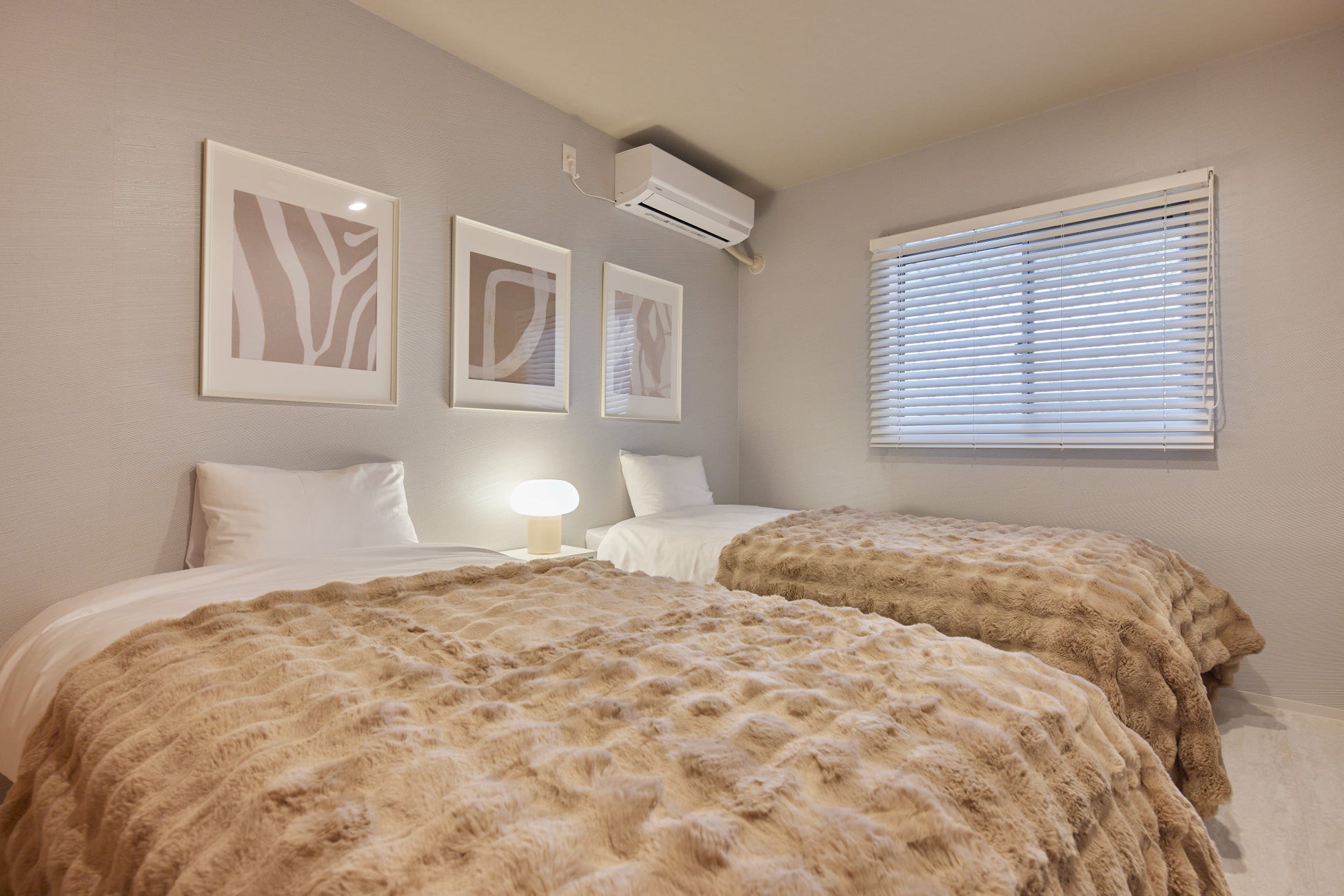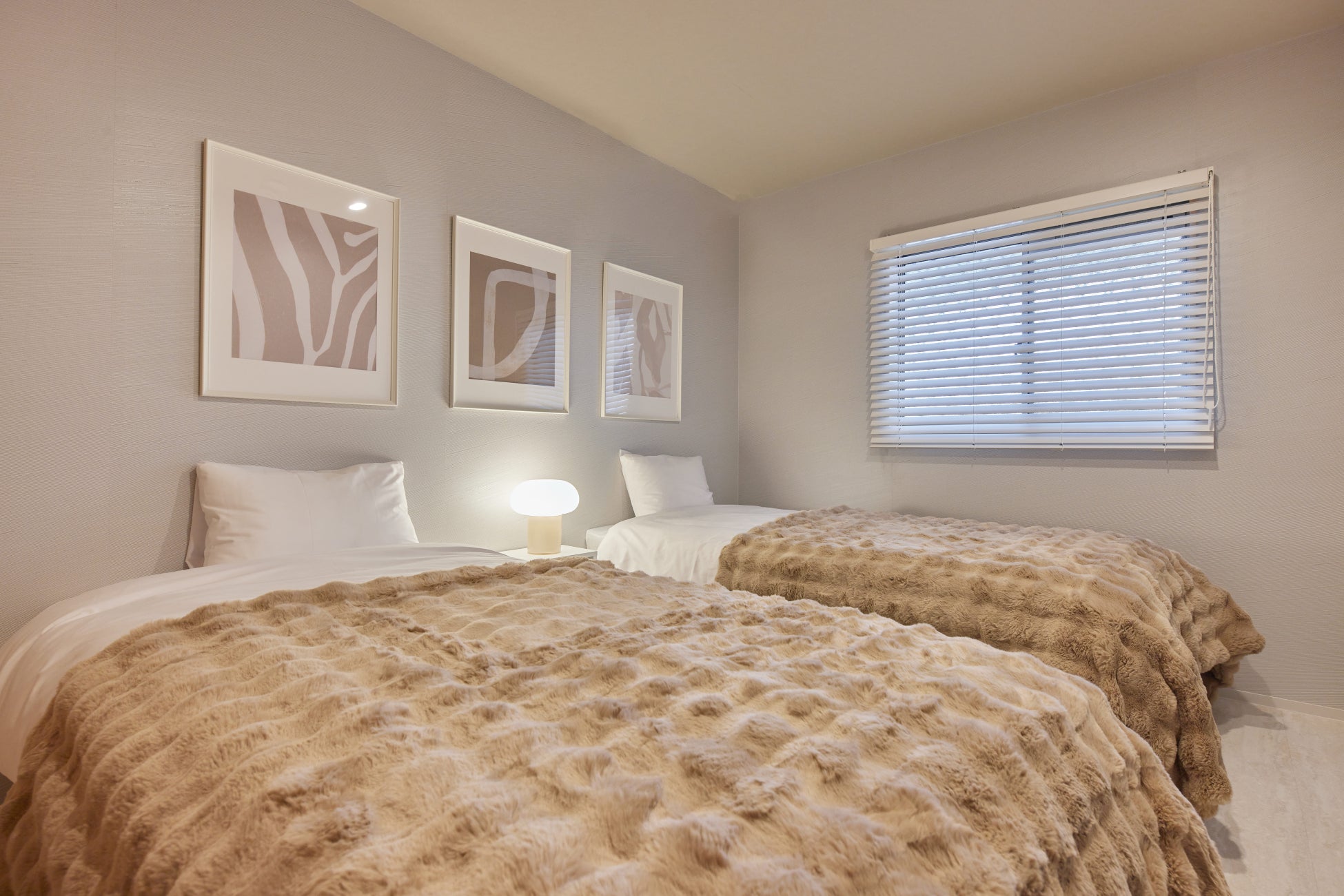 当施設はモダンエレガントなインテリアが魅力の施設となっております。落ち着きのある色味と洗練されたデザインで統一された内装は、訪れるゲストに上質な時間を提供します。約21.5畳の明るく開放感あるLDKはくつろぎの時間を過ごすのに最適です。4つの寝室を備え、最大13名までの宿泊が可能なため、複数家族での利用や卒業旅行など、さまざまなグループシーンに対応します。