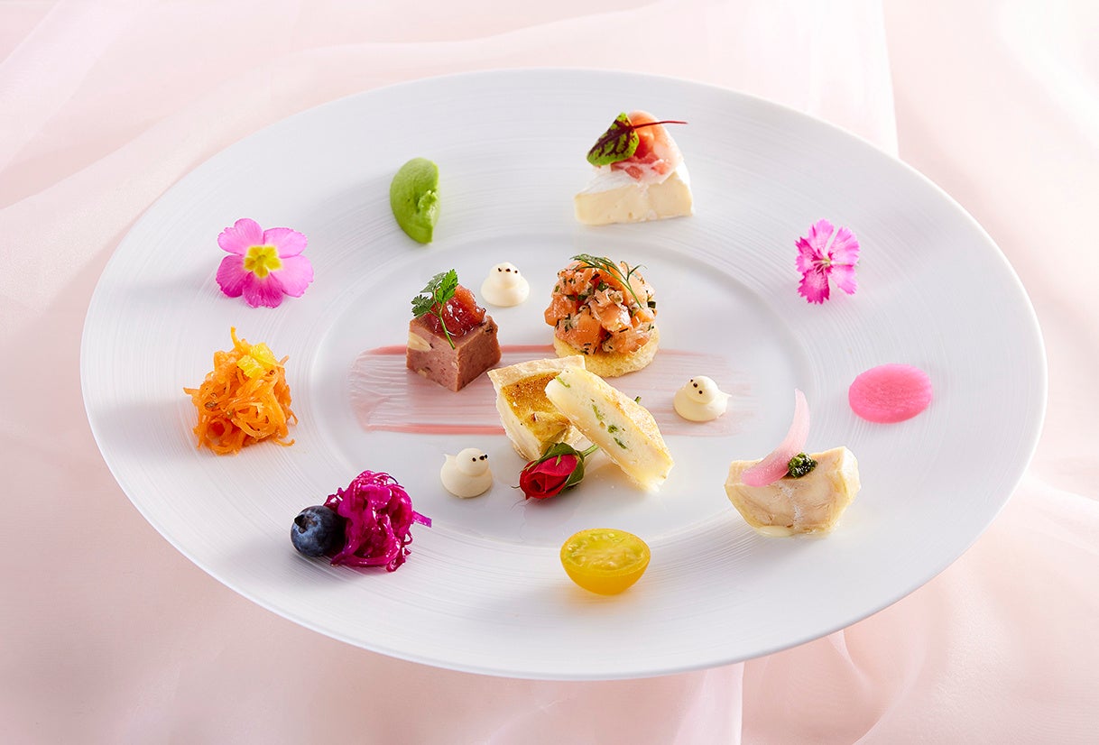 春をイメージした食材・お料理をバラエティ豊かにレイアウト。いろいろな味をお楽しみいただけるワクワクする一皿です。
