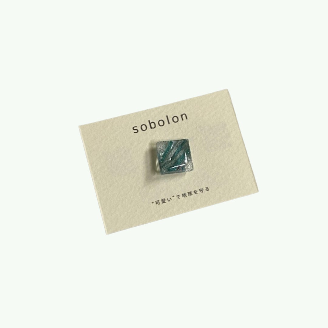「かわいいで地球を守る」をコンセプトにしたアクセサリーブランド「sobolon」のピンバッチ。海洋プラスチックを拾い集め、人の手作業で一つのアクセサリーに。岐阜の清流をイメージして作られています。