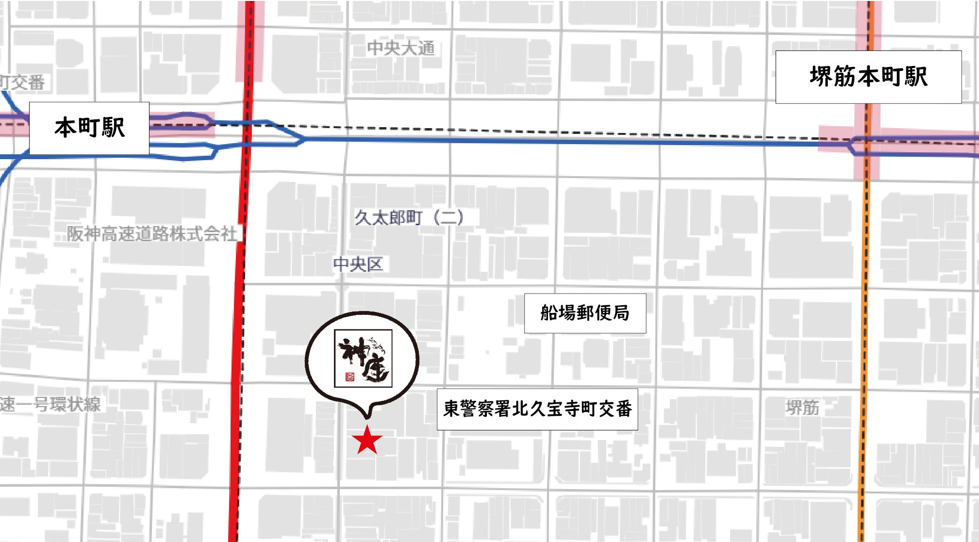 今回オープンするどうとんぼり神座 せんば店は、Osaka Metro御堂筋線 本町駅より徒歩3分、Osaka Metro中央線 堺筋本町駅より徒歩7分の場所に(大阪府大阪市中央区北久宝寺町3丁目4-13)にオープンします。