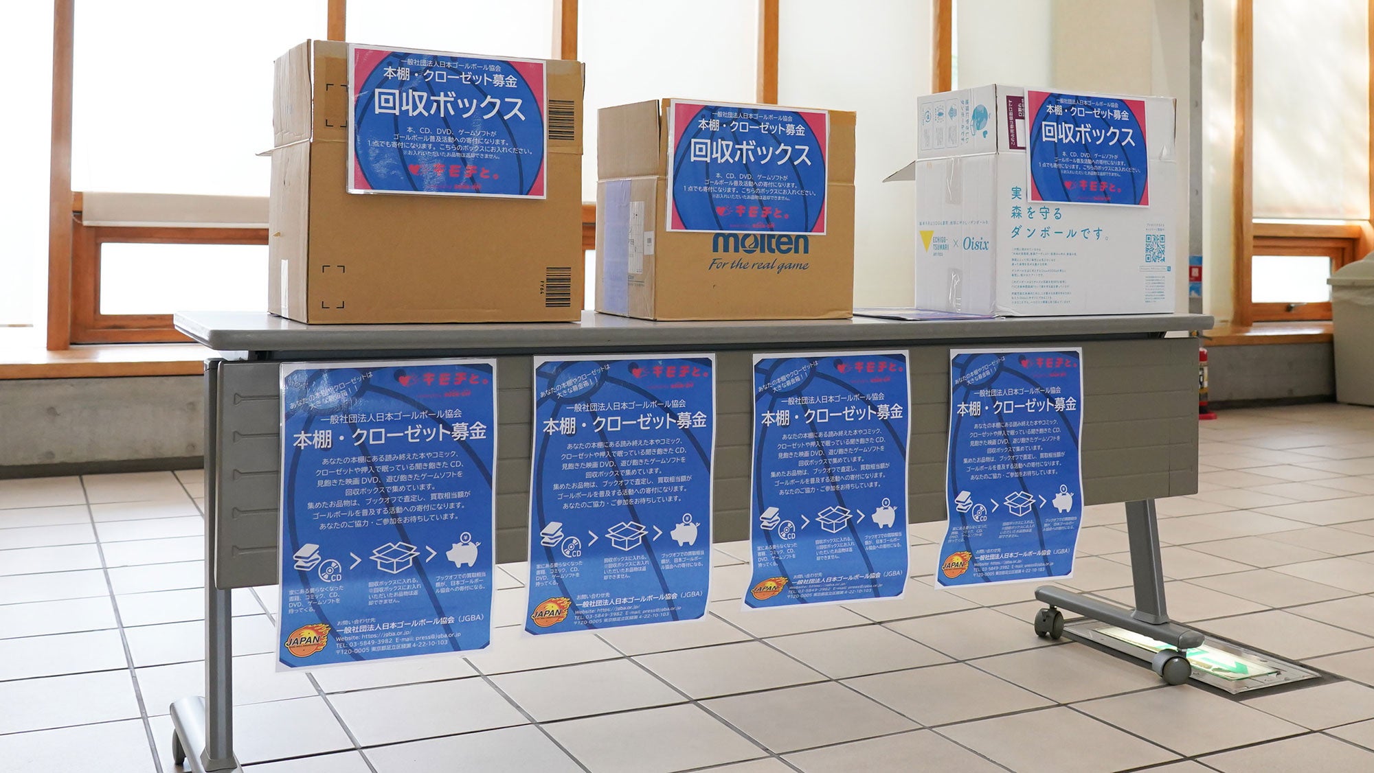 「本棚・クローゼット募金」とは、ブックオフの宅配買取寄付サービス「キモチと。」に参加することで実現した、不要になったモノをブックオフが買取を行い、買取相当額がゴールボール普及の寄付になる取り組みです。MONEY DOCTOR パラスポーツスペシャル 第30回 日本ゴールボール選手権大会を開催している新宿スポーツセンターで、11月4日(土)・5日(日)の2日間、本棚にある読み終えた書籍・コミック、クローゼットで眠っている聞き飽きたCD、見飽きたDVD、遊び飽きたゲームソフトなどの収集活動を行います。