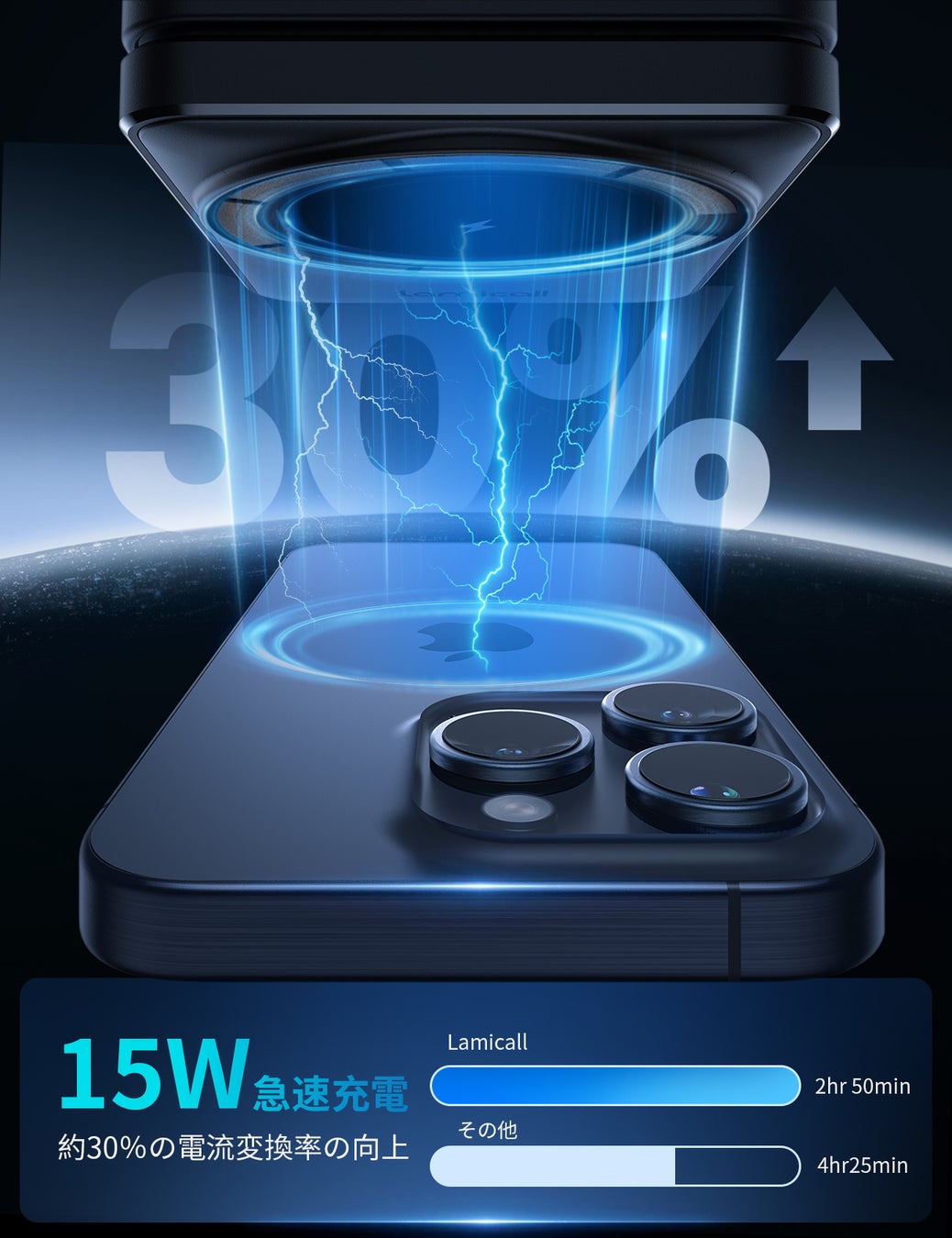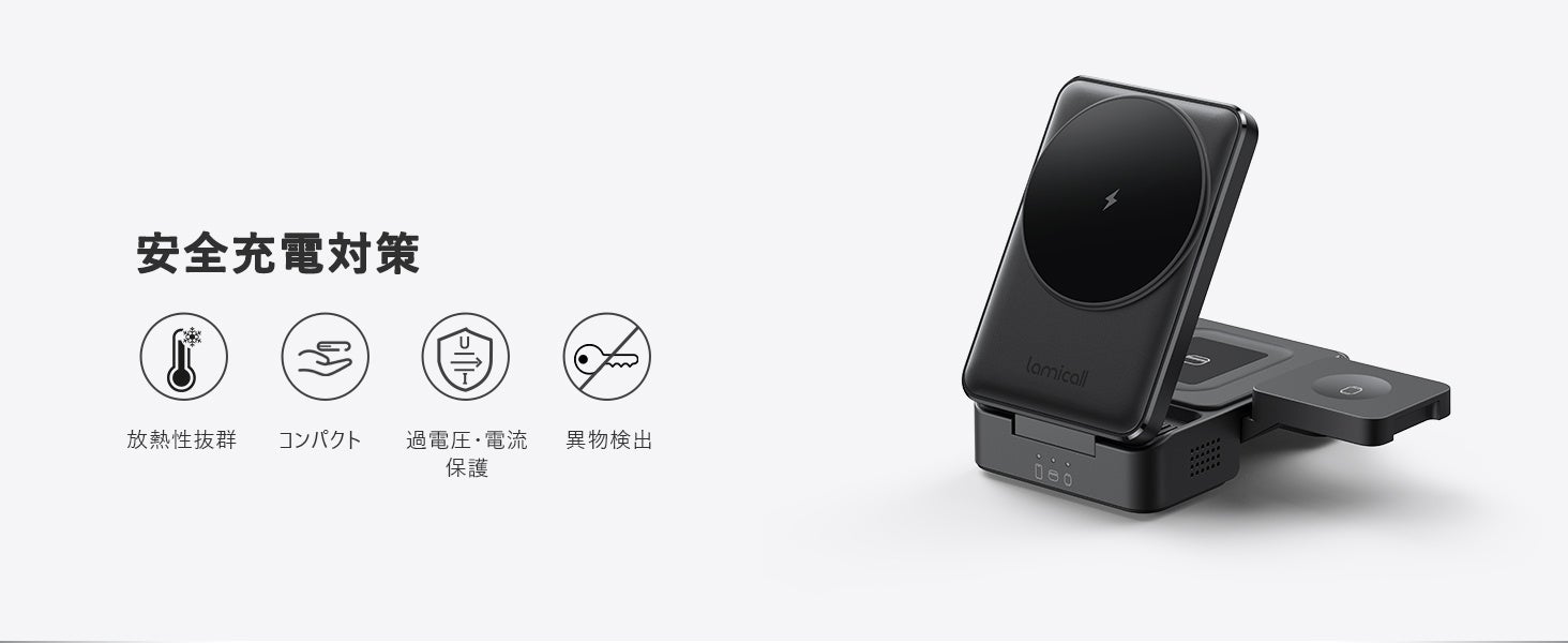 コンシューマ向けスマートフォンやパソコンのアクセサリー製品を製造・販売するLamicallは、iPhone12/13/14/15/16シリーズ・Apple Watch・AirPodsに対応する15W急速充電可能の3in1ワイヤレス充電器を販売することをお知らせいたします。本製品は軽くて折り畳み可能で、手のひらやポケットに簡単に収まります。充電機能以外に、スマホのスタンドとしても優れています。デザインもシンプルでスタイリッシュなため、どんなインテリアにもマッチしやすく、家庭でもオフィスでも使いやすいです。